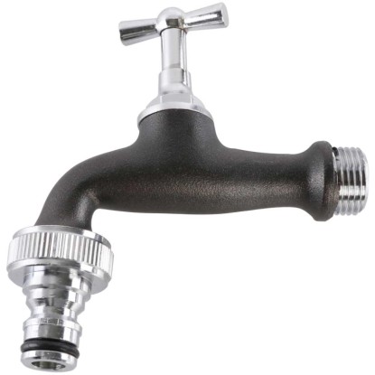 Der klassische Wasserhahn ermöglicht eine stufenlose Regulierung des Wasserflusses. Die hochwertige Verarbeitung aus verchromtem Messing garantiert eine lange Lebensdauer.