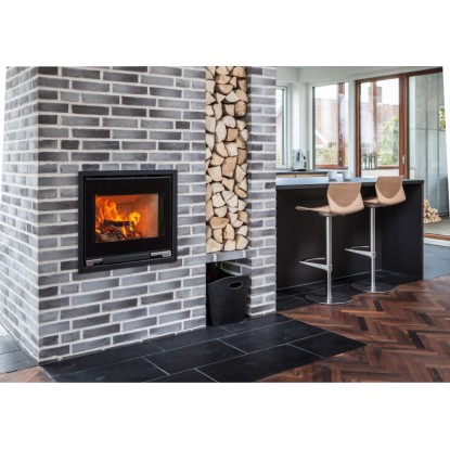 Der Aduro Kamineinsatz 5.1 mit integrierten Griffen überzeugt mit leistungsstarkem Zeitbrand und einer Heizleistung von 7 kW. Er besteht aus Stahl und ist daher sehr langlebig und stabil. Dank des grossen, frontalen Sichtfensters mit intelligenter Scheibenspülung, können Sie jederzeit ein atemberaubendes Flammenspiel geniessen. Der Aduro Kamineinsatz 5.1 wird mit Scheitholz betrieben und verbrennt sein Holz sehr sparsam, womit ein Holzersparnis von bis zu 40 % gegeben ist. Die patentierte Aduro-tronic Automatik reguliert die Verbrennungsluft und sichert eine optimale Verbrennung.
