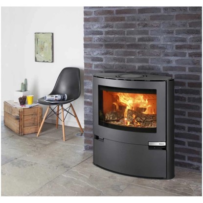 Der Aduro Kaminofen 15 ist ein stilvoller, eleganter und harmonischer Kamin im skandinavischen Design. Die schöne, elliptische Form und eine große Brennkammer, die Holzscheite bis zu 50 cm Länge aufnehmen kann, machen die Aduro 15 Serie einzigartig. Die breite Formgebung in Verbindung mit minimaler Tiefe liefert ein besonders schönes, breites Flammenbild. So wird das Kaminfeuer zu einem dekorativen Bestandteil gemütlicher Atmosphäre. Die Aduro 15 Serie überzeugt durch hervorragende Brennleistung und die Möglichkeit, auch mit geringer Wärmeleistung zu verbrennen. Ein sehr gut regulierbarer, leistungsstarker Zeitbrand, eine Heizleistung von 6,5 kW, sowie eine elektronik-freie automatische Regulierung der Verbrennungsluft runden die technischen Highlights ab. Natürlich kann das Rauchrohr sowohl oben als auch auf der Rückseite angeschlossen werden.