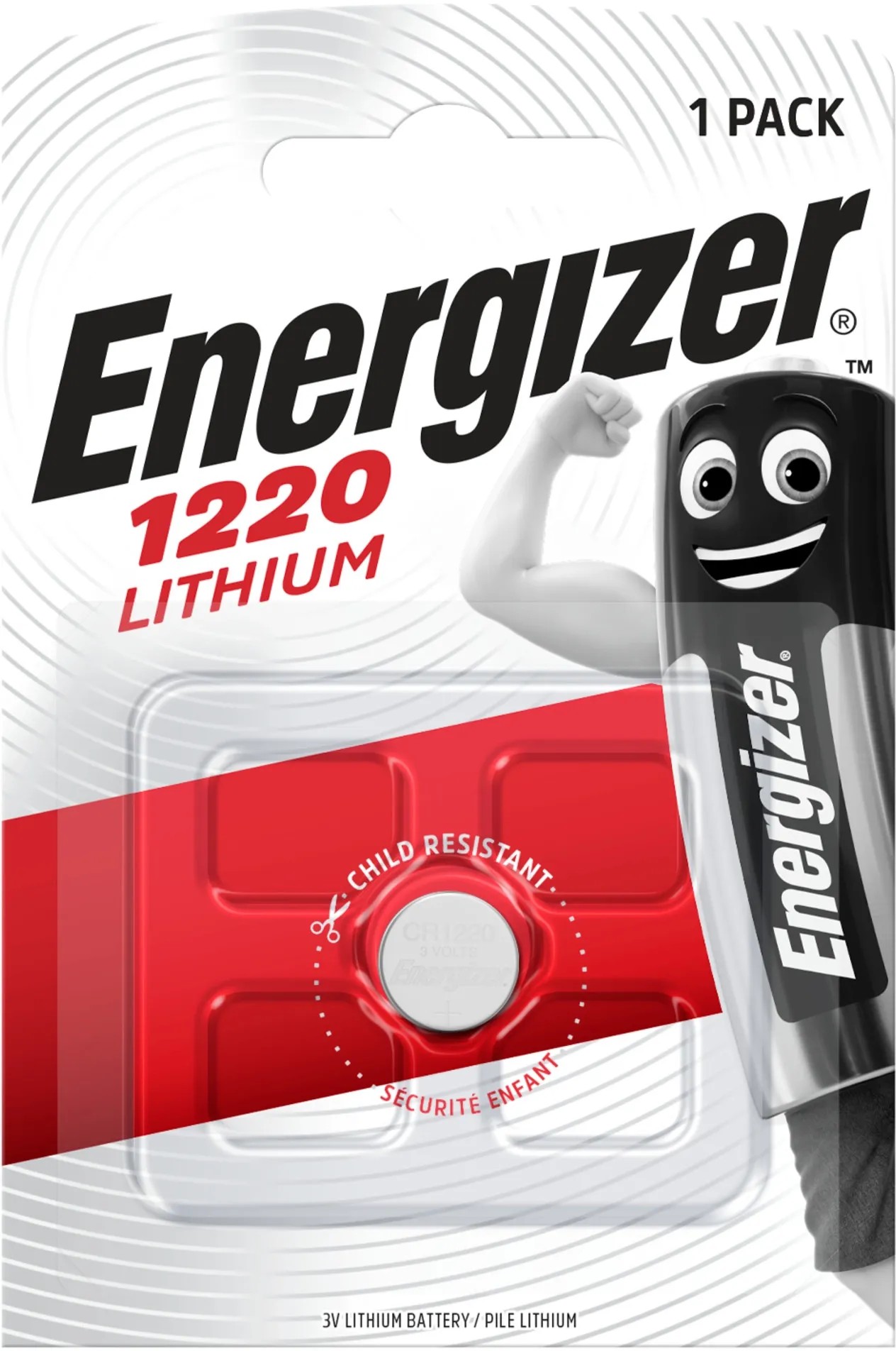 Die Energizer® Knopfzelle CR 1220 Lithium ist ideal für vielfältige Anwendungen wie z. B. Taschenrechner, Fernbedienungen, div. Taschenlampen. Sie ist ohne Quecksilber und ohne Cadmium und 10 Jahre lagerfähig.