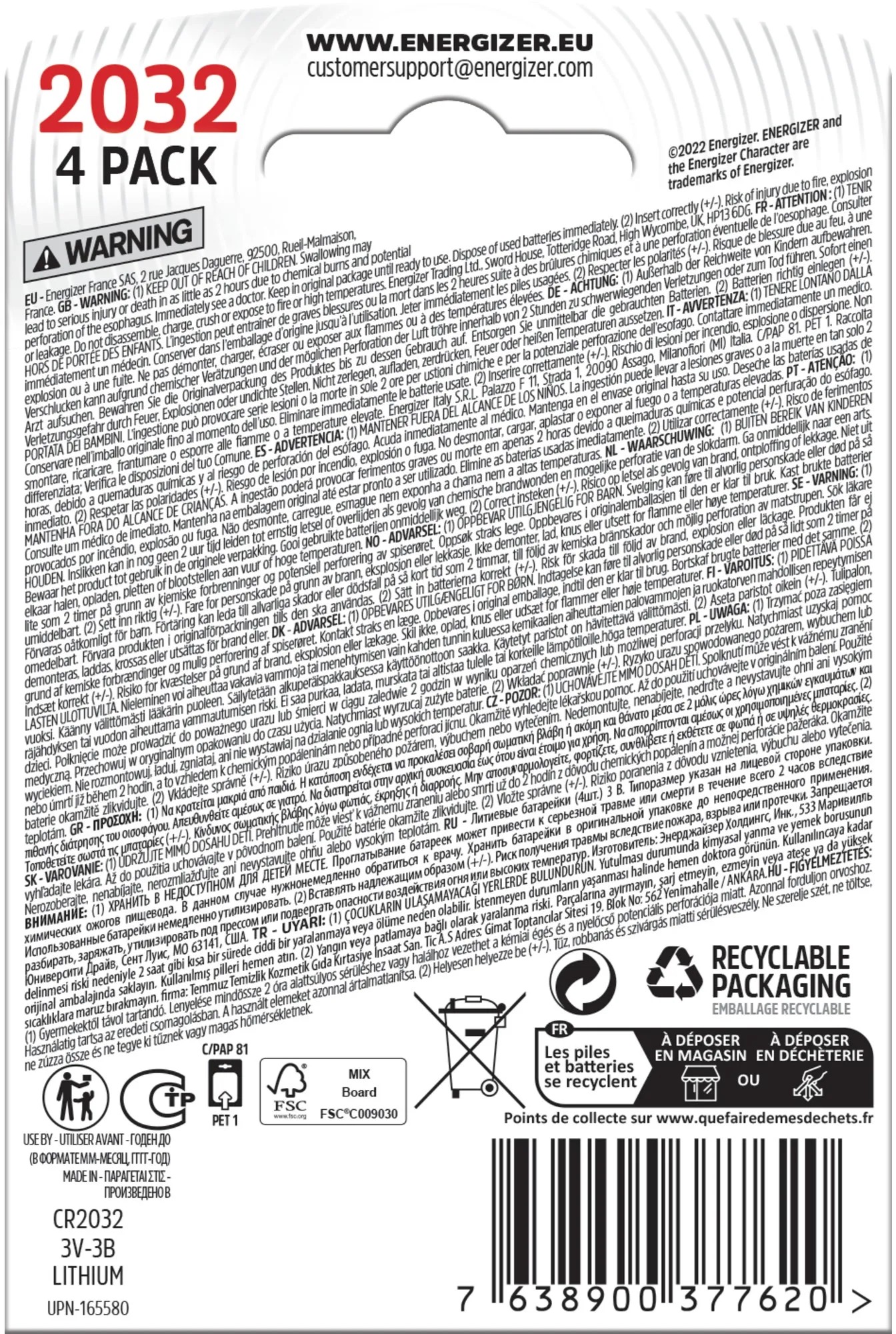 Energizer-Knopfzelle CR2032 Lithium 4 Stk.