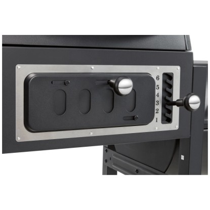 Ihnen ist nach dem schmackhaften Aroma des Holzkohlefeuers? Dann können Sie der Holzkohlebereich des Grillwagens mit einer Grillfläche von 43 x 42,7 cm sicherlich überzeugen. Durch die 6-stufige Hebevorrichtung des Kohlegrills sowie den Lüftungsschieber können Sie die Grilltemperatur optimal steuern. Je nachdem, wie weit die Glut von dem Grillrost entfernt ist, verändert sich die Temperatur am Grillgut.