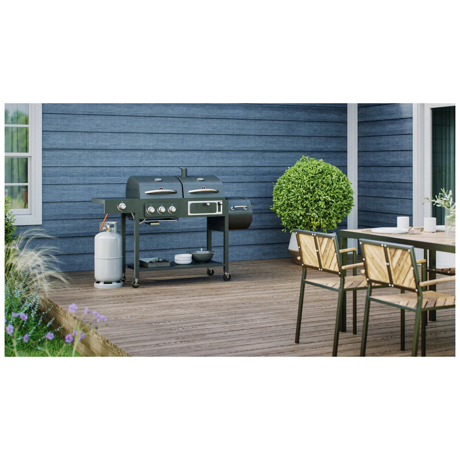 Gas, Kohle oder Smoker - Sie wollen sich nicht entscheiden? Sie wollen einfach alles? Mit dem Jamestown Dean Kombigrill werden Ihnen alle Wünsche erfüllt! Mit diesem Grill können Sie grillen, räuchern, braten, dünsten oder kochen. Mit der Grillstation können Sie jedes Gericht perfekt zubereiten, sei es Steak, geschmortes Fleisch oder geräucherten Fisch! So wird Ihr Garten zur XXL-Freiluftküche.