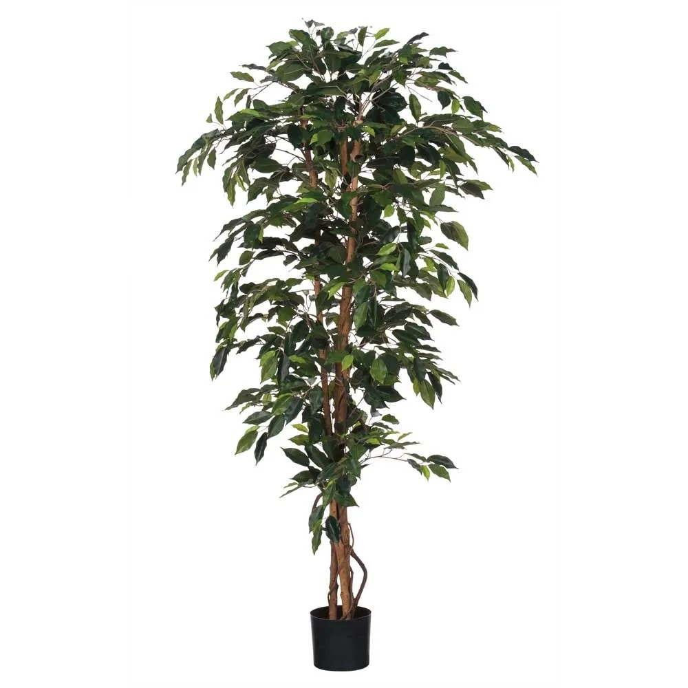 Die Kunstpflanzen von Mica Decorations für den Innenbereich sind von echten Pflanzen nicht zu unterscheiden, benötigen aber keinerlei Pflege. Mit dieser Birkenfeige holen Sie sich zudem sofort mehr Grün in Ihr Haus. Die frischen, jungen Blättchen sind subtil mit dunklen Blättern durchsetzt, was für ein natürliches Aussehen sorgt. Das lässt die Birkenfeige in Kombination mit dem Holzstamm wie echt aussehen! Die Kunstpflanze ist in einem schwarzen Kunststoff-Topf fest verankert, muss aber vor dem Einsatz noch modelliert werden. Stellen Sie sie nach dem Entfalten so hin oder verleihen Sie ihr durch einen dekorativen Übertopf eine individuelle Note. Der Ficus lässt sich ideal mit anderen Kunstpflanzen und -blumen aus der Kollektion kombinieren. Im entfalteten Zustand ist die Pflanze ca. 180 cm hoch und hat einen Durchmesser von ca. 100 cm.