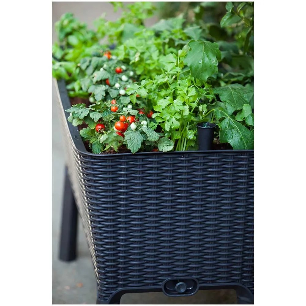 Das Easy Growing-System macht Gartenarbeit zum wahren Vergnügen. Easy Growing ist ein ergonomisches Hochbeet, das Bücken oder Hinknien überflüssig macht und sorgt damit für mehr Komfort. Das Hochbeet verfügt ausserdem über ein Komplett-Bewässerungssystem, das aus einem Wasserreservoir, einer Wasserstandsanzeige, einem Wasserablauf besteht. Das Wasserreservoir sorgt dafür, dass die Wurzeln ständig bewässert werden und die Wasserstandsanzeige zeigt an, wann Sie zu viel gewässert haben. Dieses attraktive Beet kann im Innen- und Aussenbereich verwendet werden.