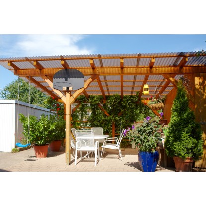 Die Platte ist aus Acryl mit Elastomer gefertigt und dadurch witterungsbeständig und langlebig mit einer brillanten Optik. So eignet sie sich zum Einsatz bei Dacheindeckungen, Wandverkleidungen, Terrassenüberdachungen, Pergolen / Carports, Lichtbändern, Hauseingängen usw.