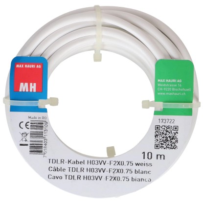 TDLR-Kabel H03VV-F Weiss 2 x 0,75 mm² Länge 10 m