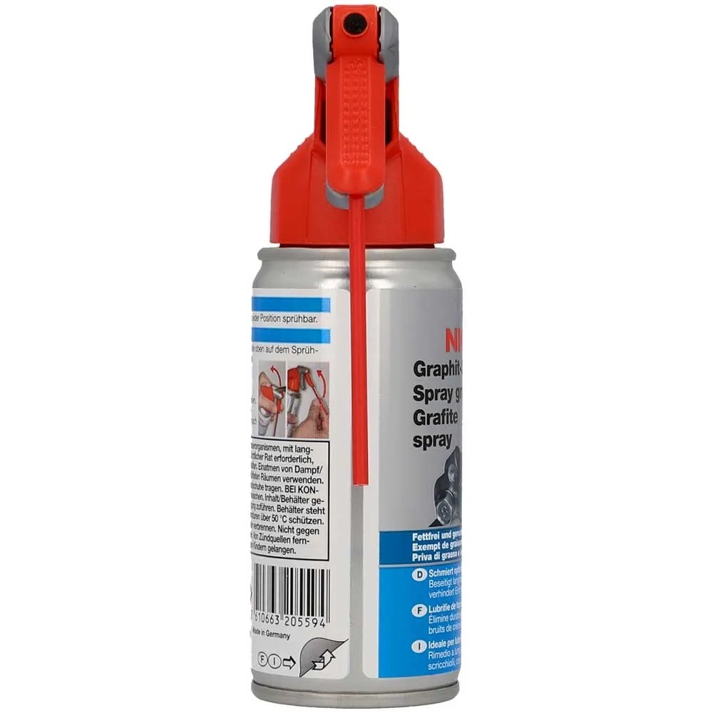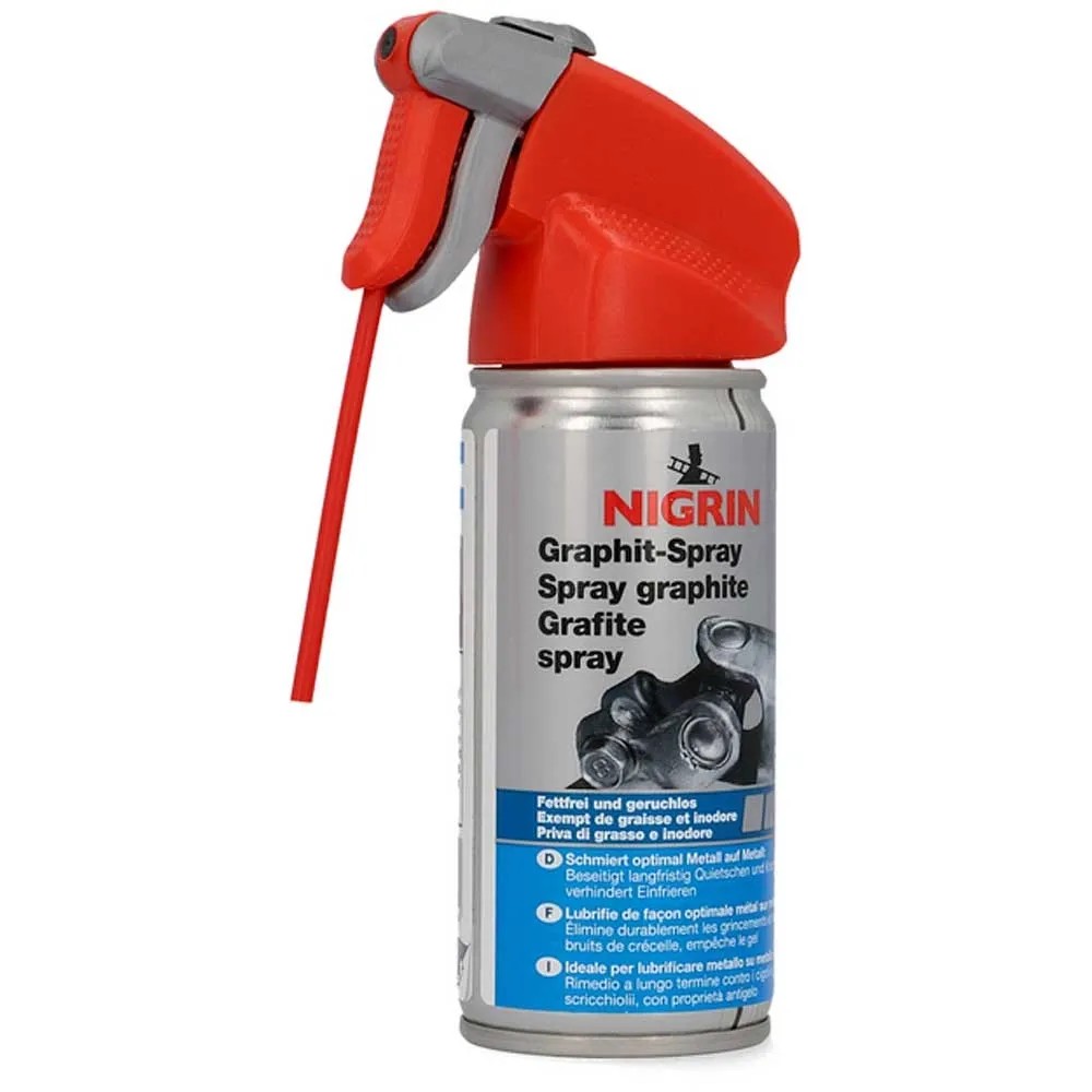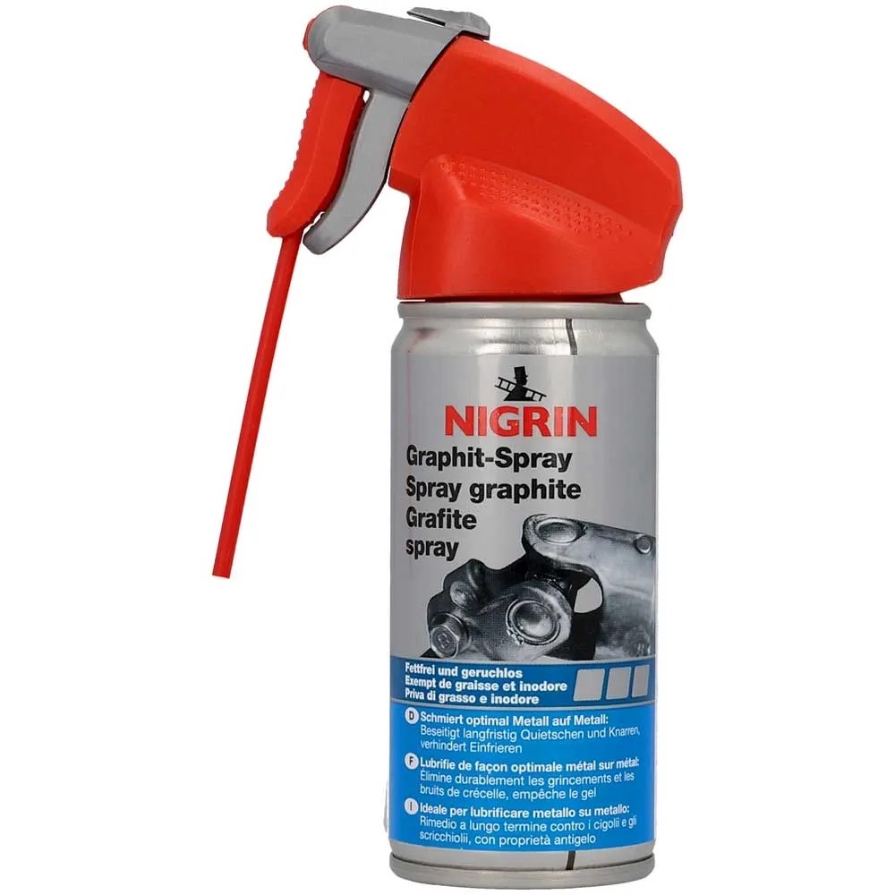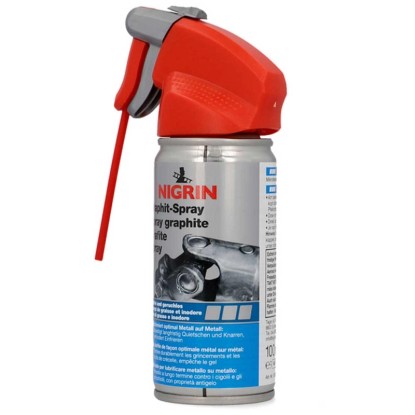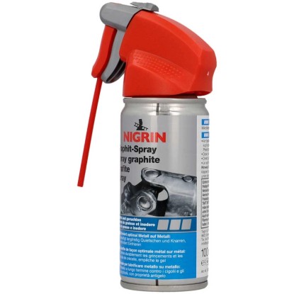 Das Nigrin Graphit-Spray besteht aus absolut fettfreiem, geruchlosem und mikrofein vermahlenem Naturgraphit. Es schmiert optimal alle Metall-Verbindungen, indem es deren Reibung reduziert. Dadurch schützt es das Material und wirkt dem vorzeitigen Verschleiss entgegen.