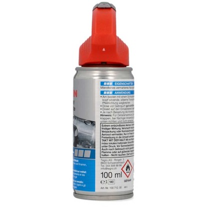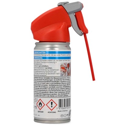 Anwendungshinweise: Transportsicherung des Sprühkopfes abbrechen. Dose vor Gebrauch gut schütteln. Direkt auf den Einsatzbereich sprühen. Je nach Belastung die Anwendung wiederholen.