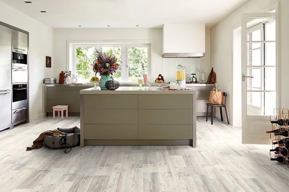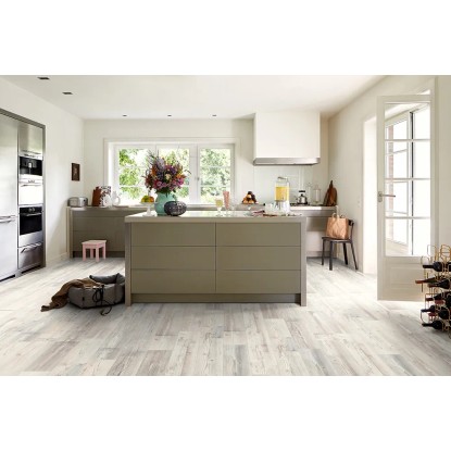 Durch ein zurückhaltendes Weiss erzeugt dieses Piniendekor ein rustikales Ambiente. Vom gemütlichen Wohnzimmer bis zum puristischen Loft, vom rustikalen Essbereich bis zum einladenden Hotelzimmer: Laminat ist einer der beliebtesten Böden, die es gibt. Und einer der vielseitigsten. Aufgrund der Vielzahl an authentischen Dekoren - von angesagter Massivholzoptik über skandinavische Leichtigkeit bis hin zu stilvoller Eleganz - findet sich für jeden Raum und Einrichtungswunsch das perfekte Design. Neben der grossen Variantenvielfalt überzeugt unser Laminat-Boden durch seine hochwertige Verarbeitung und seine funktionalen Eigenschaften. Er ist robust und pflegeleicht, flexibel und schnell verlegbar, und das alles bei einem hervorragenden Preis-Leistungs-Verhältnis. Spüren Sie die Qualität unseres Laminat-Bodens auf Schritt und Tritt.