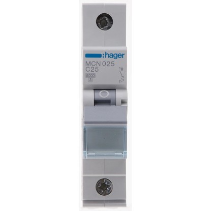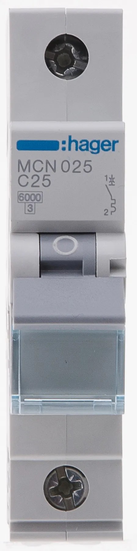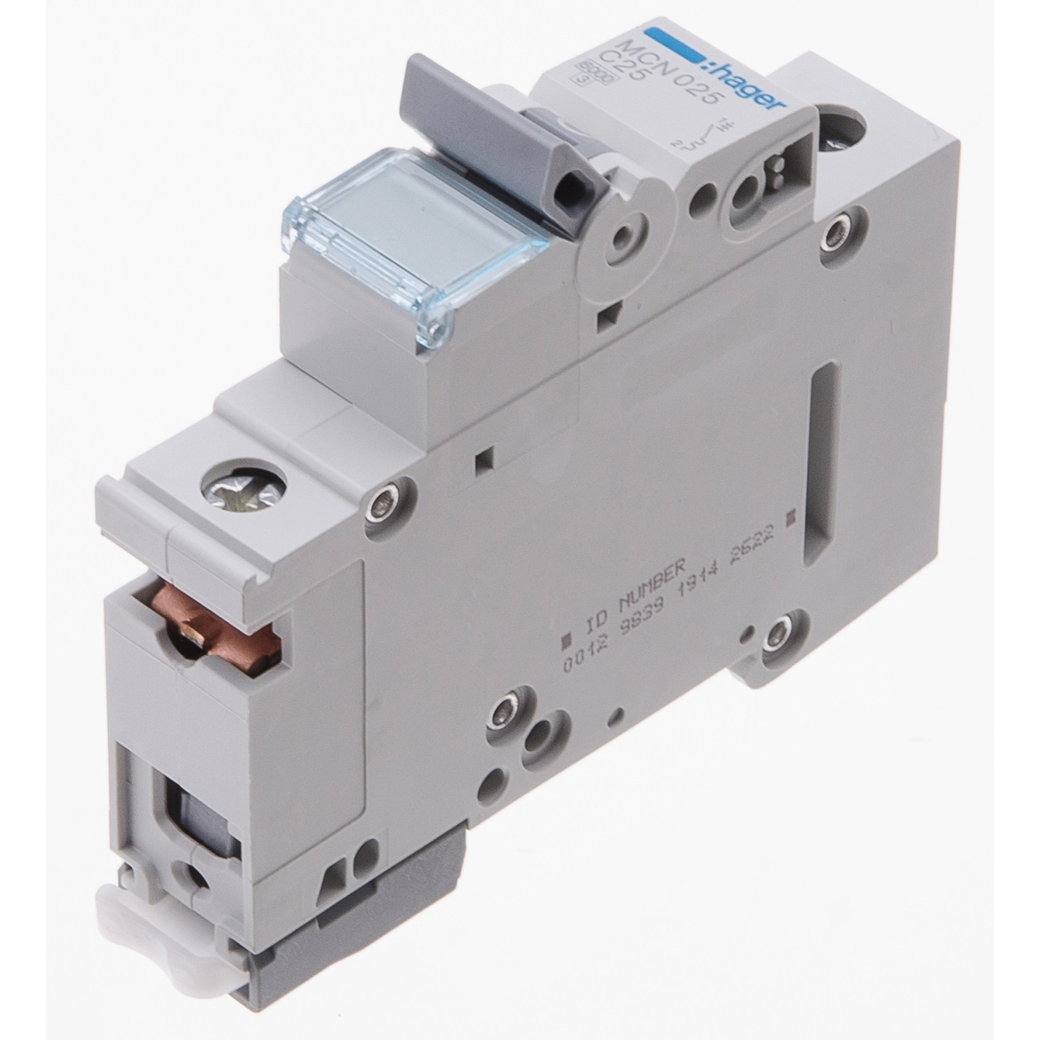 Leitungsschutzschalter (LS) werden für den Schutz von Leitungen bei Kurzschluss und Überlast eingesetzt. Im Normalfall befinden sich die Geräte im Endstromkreis von elektrischen Wohn-, Zweck- und Industrieanlagen. Dieser Leitungsschutzschalter ist 1-polig und ist für 250 V, 25 A ausgelegt. Auslösecharakteristik: C.