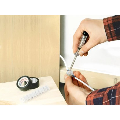 Das LUX-Tools Spannungsprüfer-Set umfasst zwei klassische Prüfer in den Grössen 65 mm und 100 mm und wird verwendet, um die Spannung von Geräten zuverlässig zu testen. Der Spannungsprüfer mit 65 mm Länge verfügt über einen Carrera-Clip. Der Spannungsprüfer mit 100 mm Länge besitzt einen Messingkopf. Beide Spannungsprüfer sind belastbar bis 250 V. Sie lassen sich vielfältig einsetzen und sind handlich im Gebrauch.