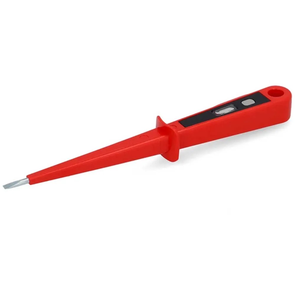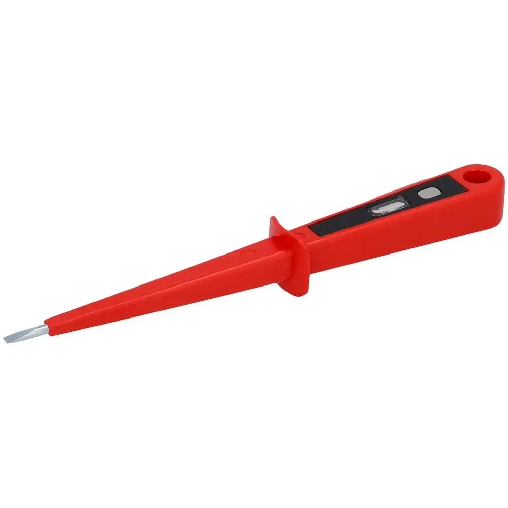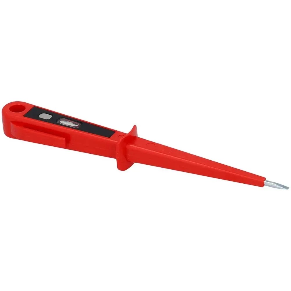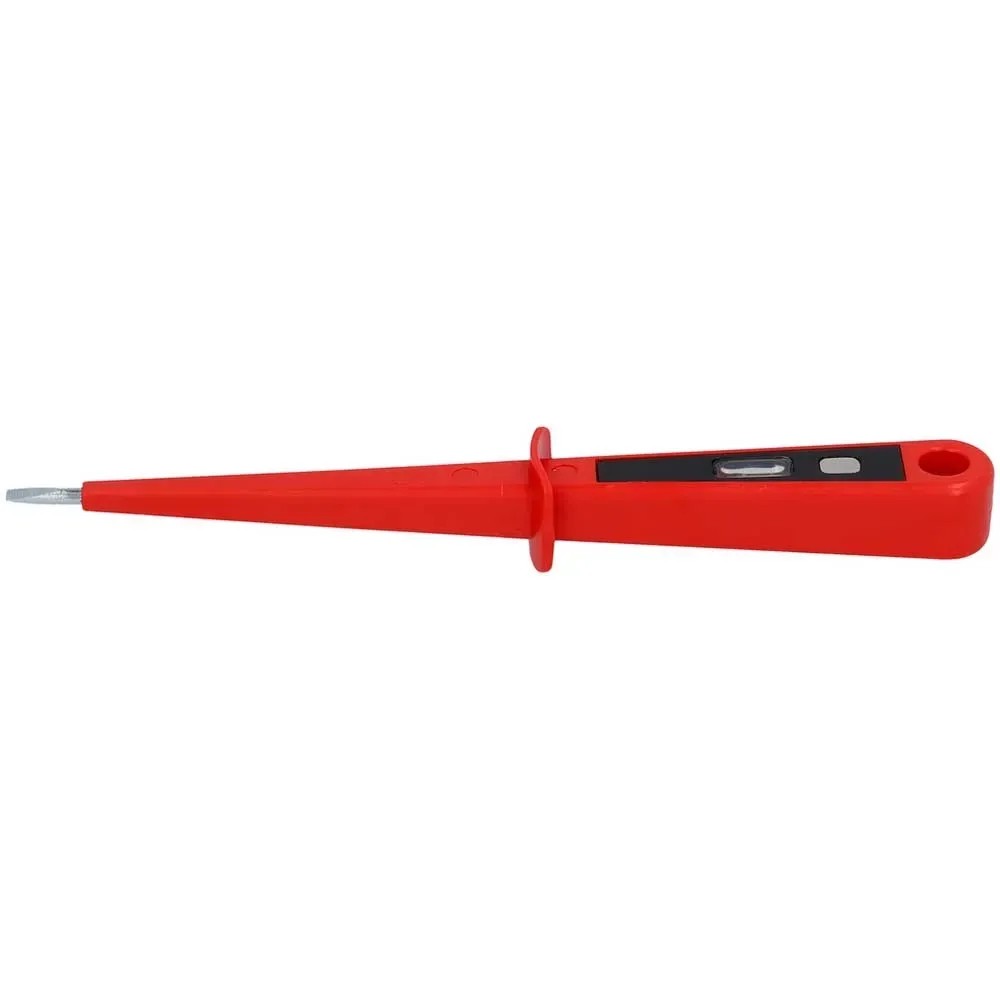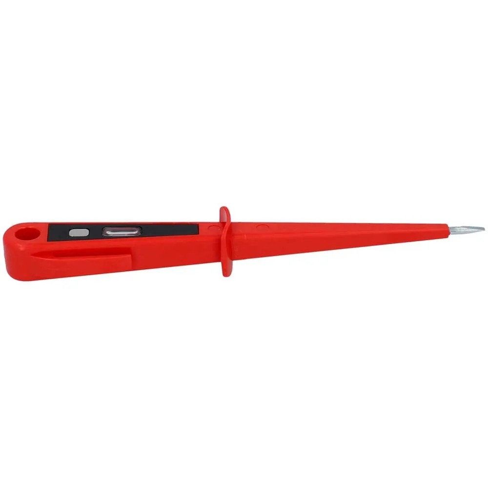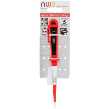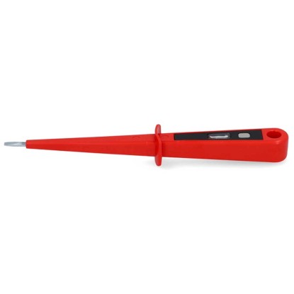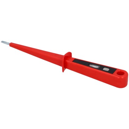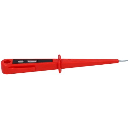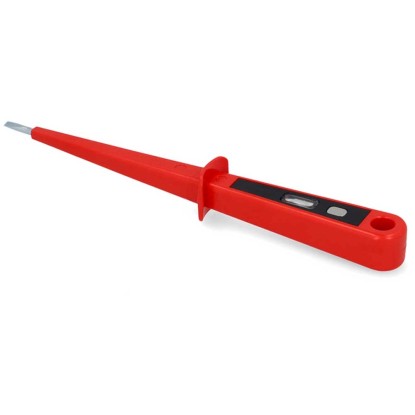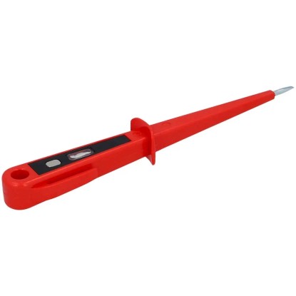 Der Spannungsprüfer mit einer Länge von 230 mm dient zum Überprüfen von Wechselspannungen an beispielsweise Kabelverbindungen. Dabei lassen sich Wechselspannungen in einem Bereich von 125 - 250 V feststellen. Geeignet ist der Stromprüfer für den Einsatz im Innen- und Aussenbereich. Hergestellt wurde er in robuster und langlebiger Qualität aus Kunststoff und Metall. Der Spannungsprüfer ist VDE-GS geprüft.