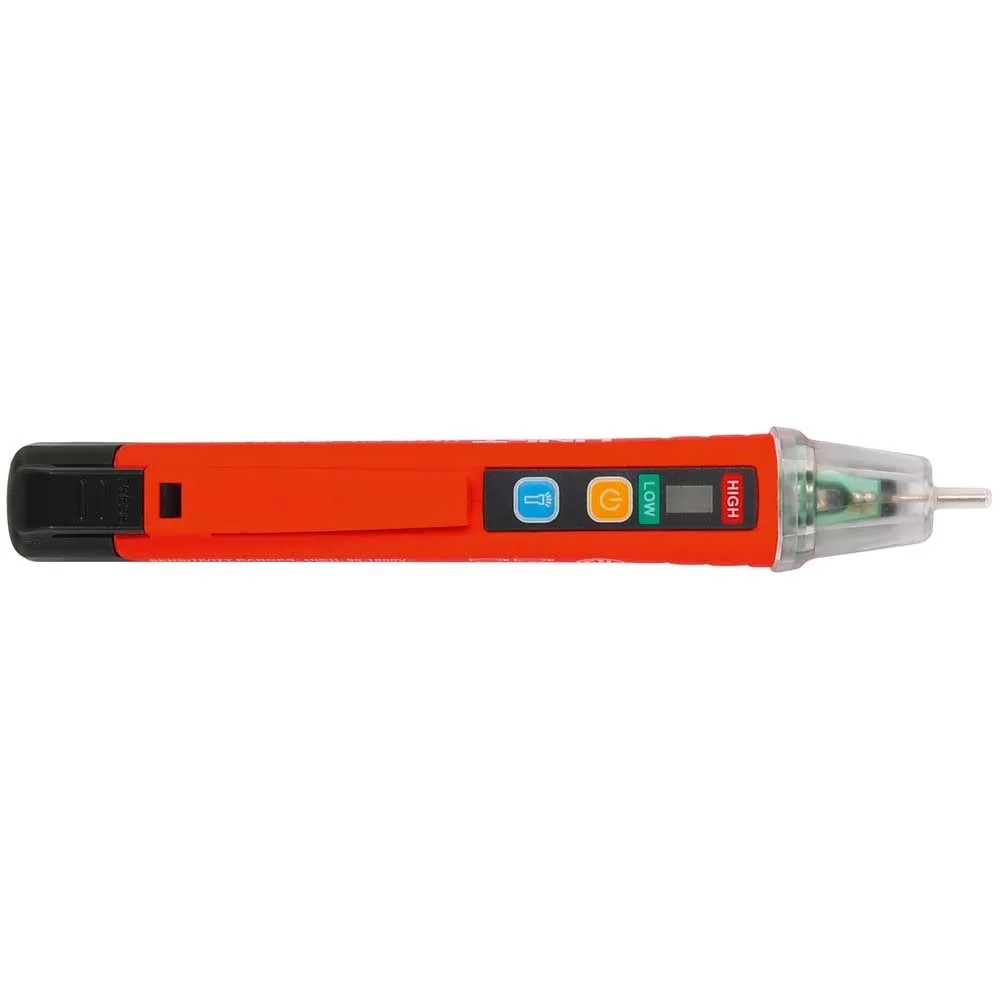 Der einfach zu bedienende Stift-Spannungsprüfer mit digitaler Anzeige ist ein nützliches Messgerät für Elektriker und alle, die an elektrischen Anlagen arbeiten. Er erkennt Niedrig- und Hochspannungsbereiche und verfügt über eine automatische Einschaltung und Abschaltung. Ebenfalls vorhanden ist ein Spotlight-Blitzlicht sowie eine akustische (Summer) und visuelle (LED) Einschaltung. Die doppelte Isolierung sorgt für maximale Sicherheit beim Einsatz und ein Ansteck-Clip verhindert ein Herausfallen beim Transport.