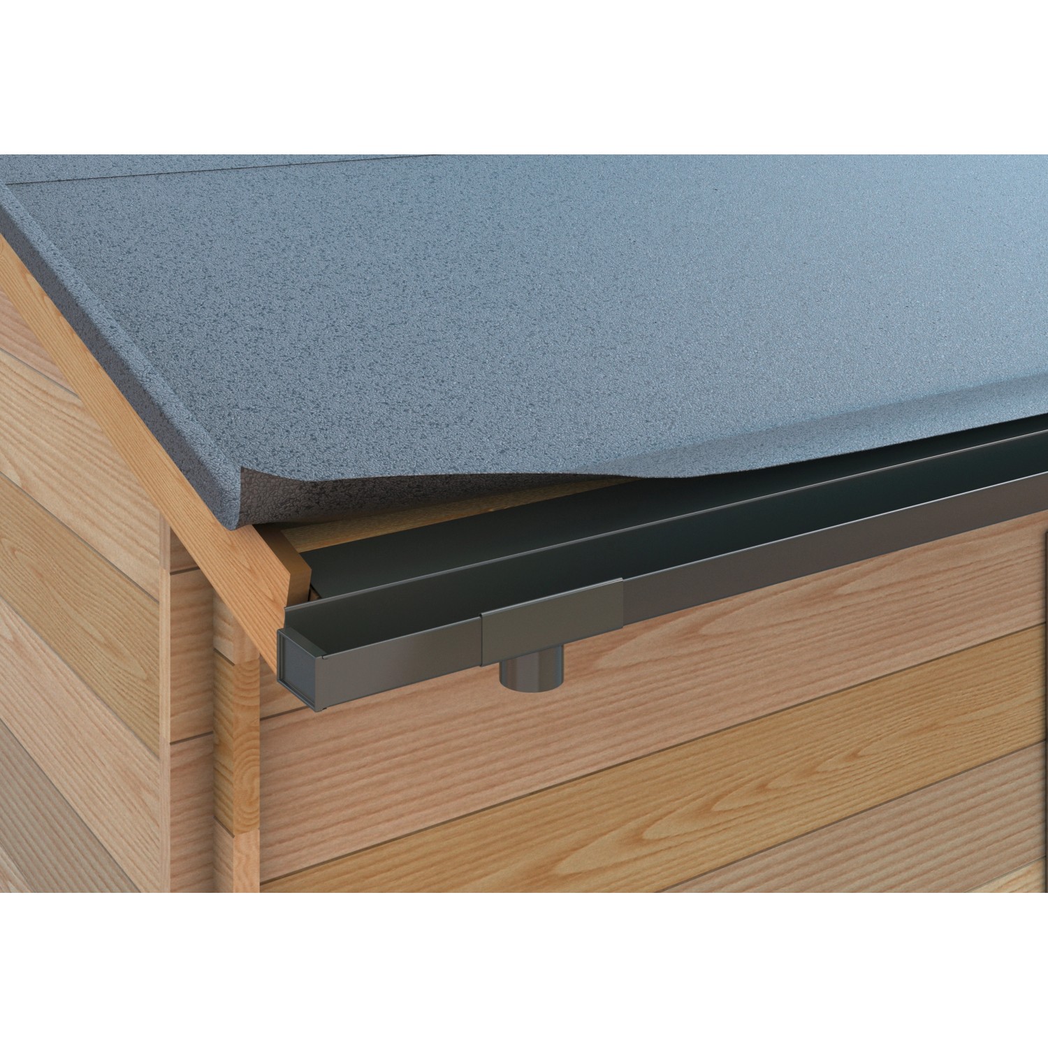 Der SDF Ablaufstutzen dient zur Verbindung zwischen SDF Dachrinne und Fallrohr bzw. Fallrohrbogen. Er wird mit Pappnägeln oder Senkkopfschrauben auf der Dachschalung angebracht (nicht im Lieferumfang). Die Verbindung mit der Dachrinne erfolgt über einfaches Kleben und Stecken.