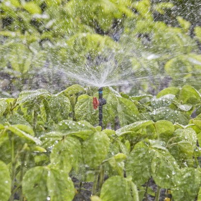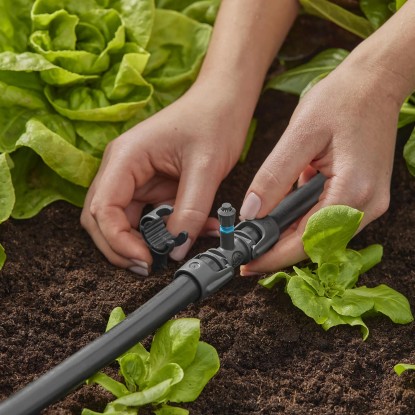 Diese Sprühdüse von Gardena ermöglicht eine zuverlässige Bewässerung in Blumen- und Gemüsebeeten und wird am besten in der Mitte eines Beets platziert. Die Beregnung erfolgt mit feinem Sprühnebel um flächendeckende 360°. Dabei erreicht die Micro-Drip-System-Komponente eine Reichweite von 3 m und bewässert eine Gesamtfläche von 28 m². Mit dem Montagewerkzeug oder dem T-Stück für Sprühdüsen ist die Installation der Sprühdüse an ein 13-mm-Verlegerohr komfortabel und einfach. Das Verlängerungsrohr für Sprühdüsen erlaubt eine Beregnung höher gewachsener Pflanzen von oben herab. Ist am Verlegerohr ein Absperrventil zwischengeschaltet, kann der Wasserdurchfluss stufenlos reguliert werden und das Absperren einzelner Stränge des Rohrs ist möglich. Die Verwendung des Absperrventils führt zu einer optimalen und wassersparenden Bewässerung. Das intuitive Design sorgt dafür, dass das Sprühbild direkt am Sprühkopf erkennbar ist. Dadurch unterscheiden sich alle Gardena Sprühdüsen klar voneinander. Das Qualitätsprodukt überzeugt mit einer Herstellung Made in Germany.