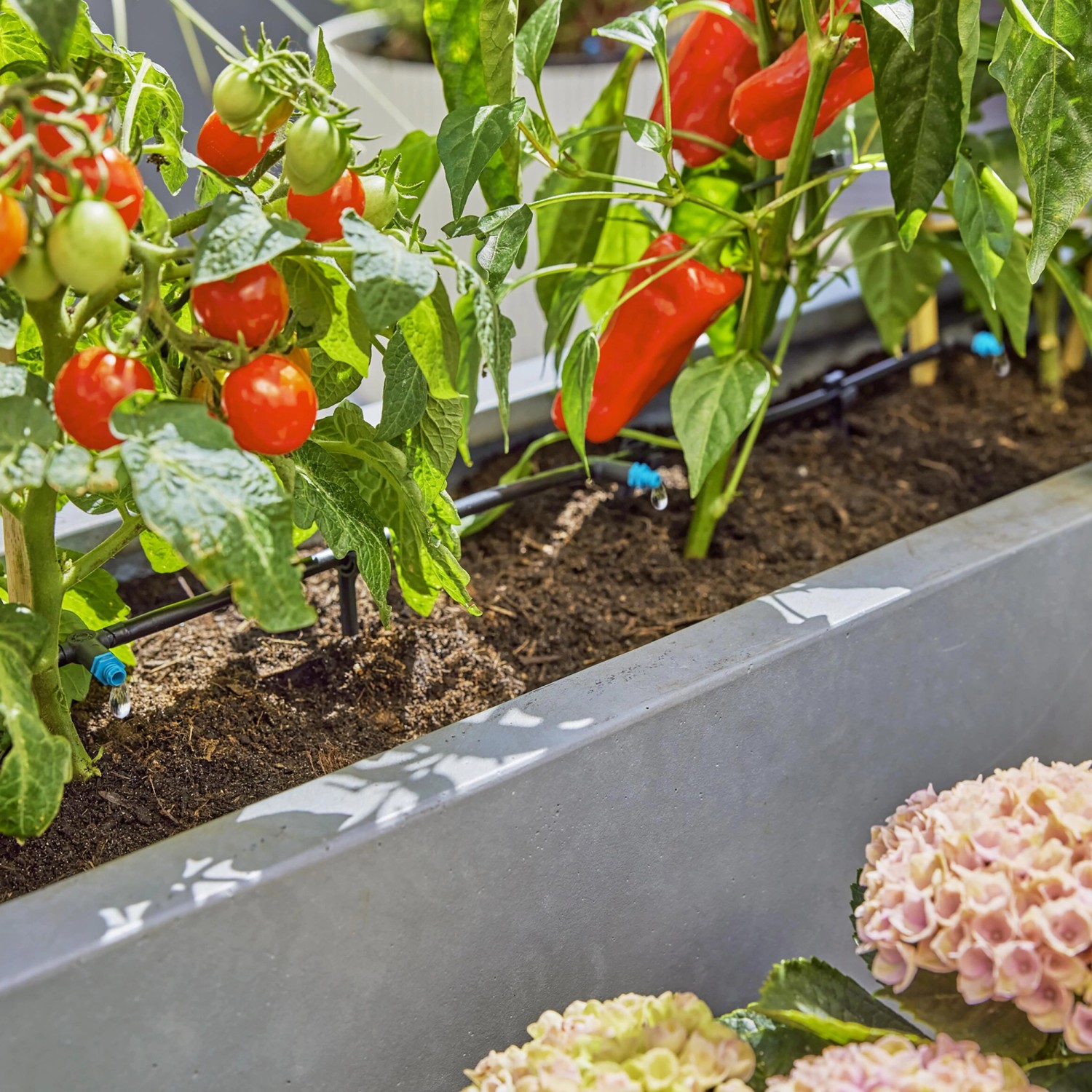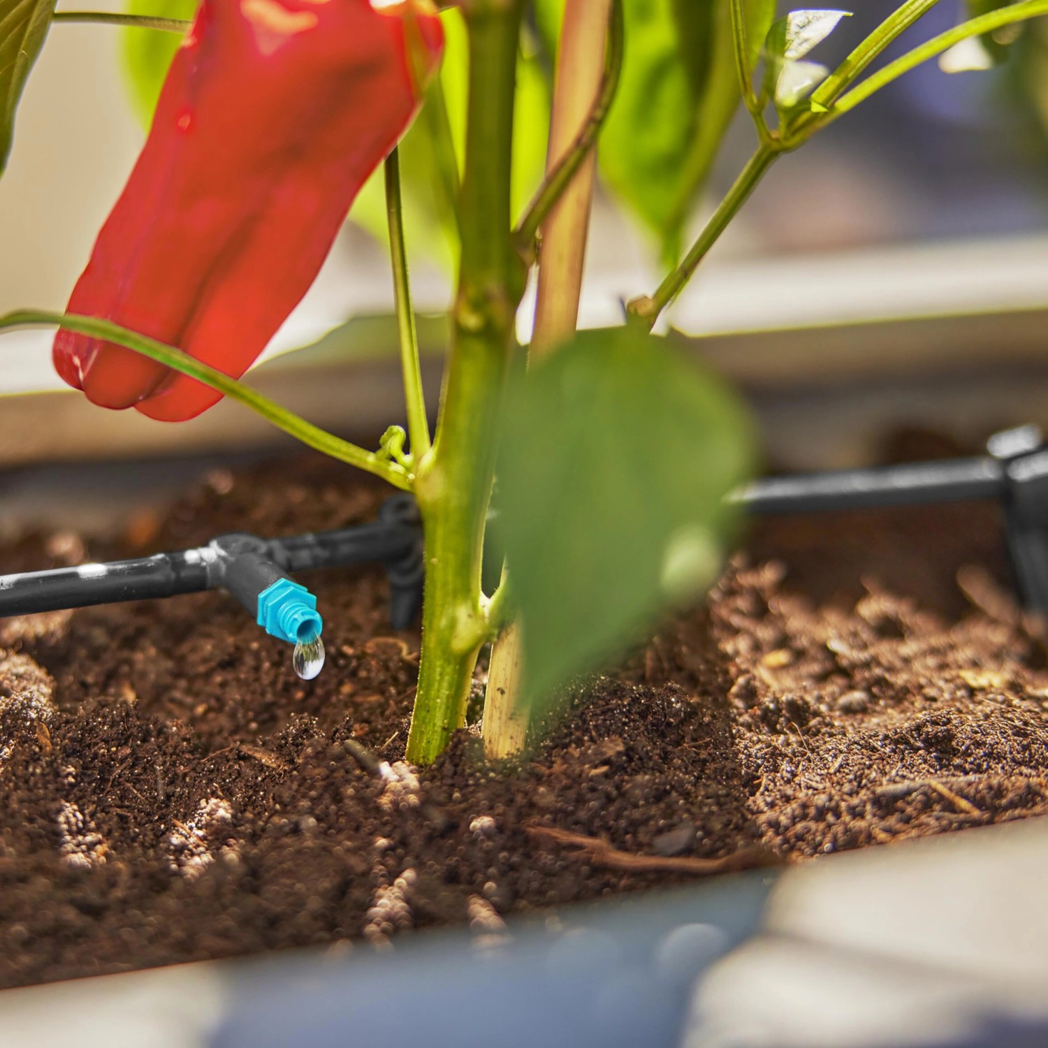 Das für bis zu 30 Pflanzen geeignete Tropfbewässerung-Set Terrasse von Gardena ist sofort einsatzbereit. Das Ready-2-Use-Set enthält alles, was für die wassersparende Tropfbewässerung einzelner Topfpflanzen auf der Terrasse mit unterschiedlichem Wasserbedarf oder von Pflanzen in Pflanztrögen benötigt wird. Der einfache Aufbau des Micro-Drip-Systems wird anhand von wenigen Schritten erklärt und gliedert sich in den Anschluss an den Wasserhahn, das Auslegen der Rohre und das Platzieren der Tropfer zu den Pflanzen. Die im Set enthaltenen MDS-Komponenten können jederzeit neu angeordnet, flexibel erweitert und damit nachhaltig verwendet werden, ohne sie zu beschädigen. Ermöglicht wird das durch die patentierte Quick & Easy Verbindungstechnik bei den 13-mm-Komponenten und die einzigartige Easy & Flexible Verbindungstechnik bei den 4,6-mm-Komponenten. Das Basisgerät 1000 ist der Startbaustein des Micro-Drip-Systems. Es reguliert den Wasserdruck aus der Leitung auf etwa 1,5 bar und speist das Wasser gleichmässig in die angeschlossenen Rohre. Die enthaltenen Reihen- und Endtropfer sorgen für eine optimale Wasserversorgung. Die Wasserabgabe der regulierbaren Endtropfer kann zwischen 0 und 15 l/h eingestellt werden, um Pflanzen mit unterschiedlichem oder steigendem Wasserbedarf ideal zu bewässern.