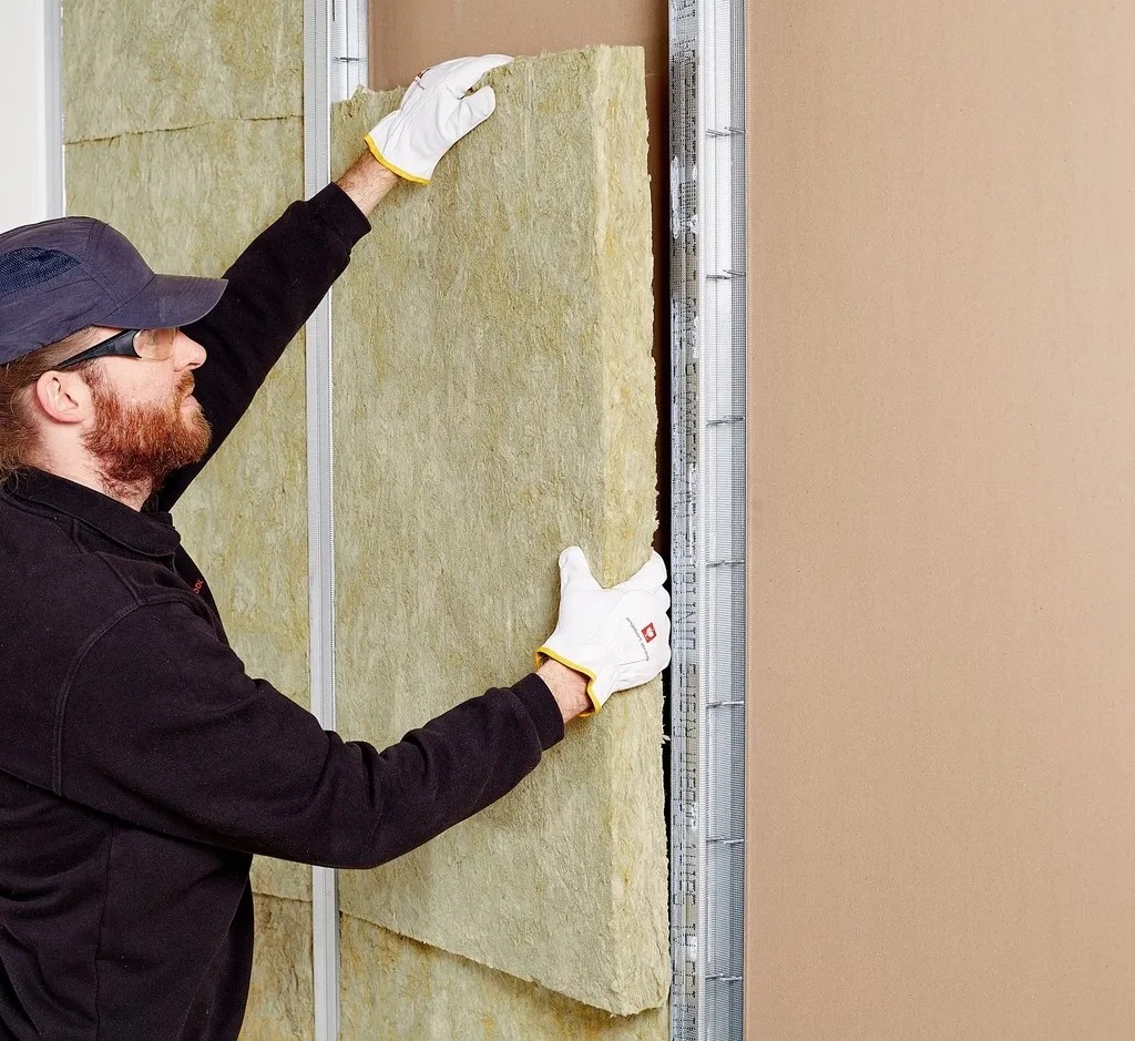 Steinwolle-Dämmplatte für die Dämmung von leichten Trennwänden. Feuerschutzkonstruktionen F30/90 nach Prüfzeugnis ausführen. Anwendungsgebiete DH, WH, WI-zk, WTR. WLG 040. Nicht brennbar. Euroklasse A1 nach DIN EN 13501-1.