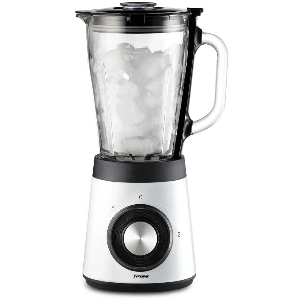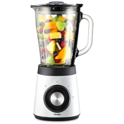 Dieser kraftvolle, elegante Standmixer von Trisa ist ideal zum Zerkleinern, Mischen, Verflüssigen und mehr. Er bietet drei vorprogrammierte Programme für Pulse, Ice Crushing und Smoothie. Der Drehknopf erlaubt eine variable Geschwindigkeitsregulierung. In den 1,5 l grossen Glasbehälter passen auch grosse Portionen. Der transparente Behälter und die Klingen aus rostfreiem Edelstahl sind für eine einfache und schnelle Reinigung abnehmbar.