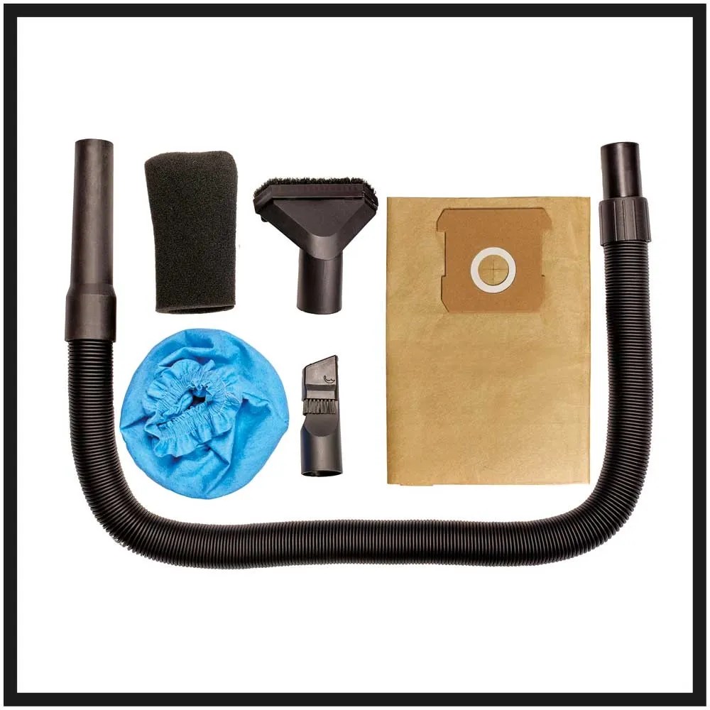 Zum Ausstattungsumfang gehören ein ausziehbarer Schlauch (Gesamtlänge 2 m), eine 2in1 Fugen- und Bürstendüse, eine 2in1 Polster- und Universaldüse, einem Schaumstoff-Filter und einem Schmutzfangsack. Im Lieferumfang enthalten sind ebenso ein 4-Ah-PXC-Akku und ein 3-A-Schnell-Ladegerät.