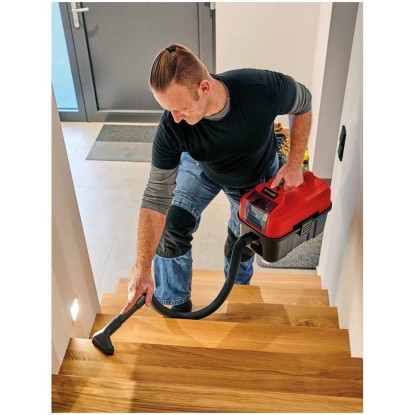 Der Einhell Akku-Nass- und Trockensauger TE-VC 18/10 Li sorgt für Sauberkeit in jedem Winkel - kabellos dank Power-X-Change. Mit einem Volumen von 10 l im Auffangbehälter, ergonomischer Bauform und Tragegriff zum Transport ist er anwenderfreundlich konzipiert, ebenso dank bequemer Ein-Hand-Bedienung mit intelligent platziertem Ein- und Ausschalter und leise laufendem Motor. Geeignet ist der TE-VC 18/10 Li fürs Nass- oder Trockensaugen. Der Sauger verfügt ausserdem über einen Blasanschluss zum Ausblasen schwer zugänglicher Stellen.