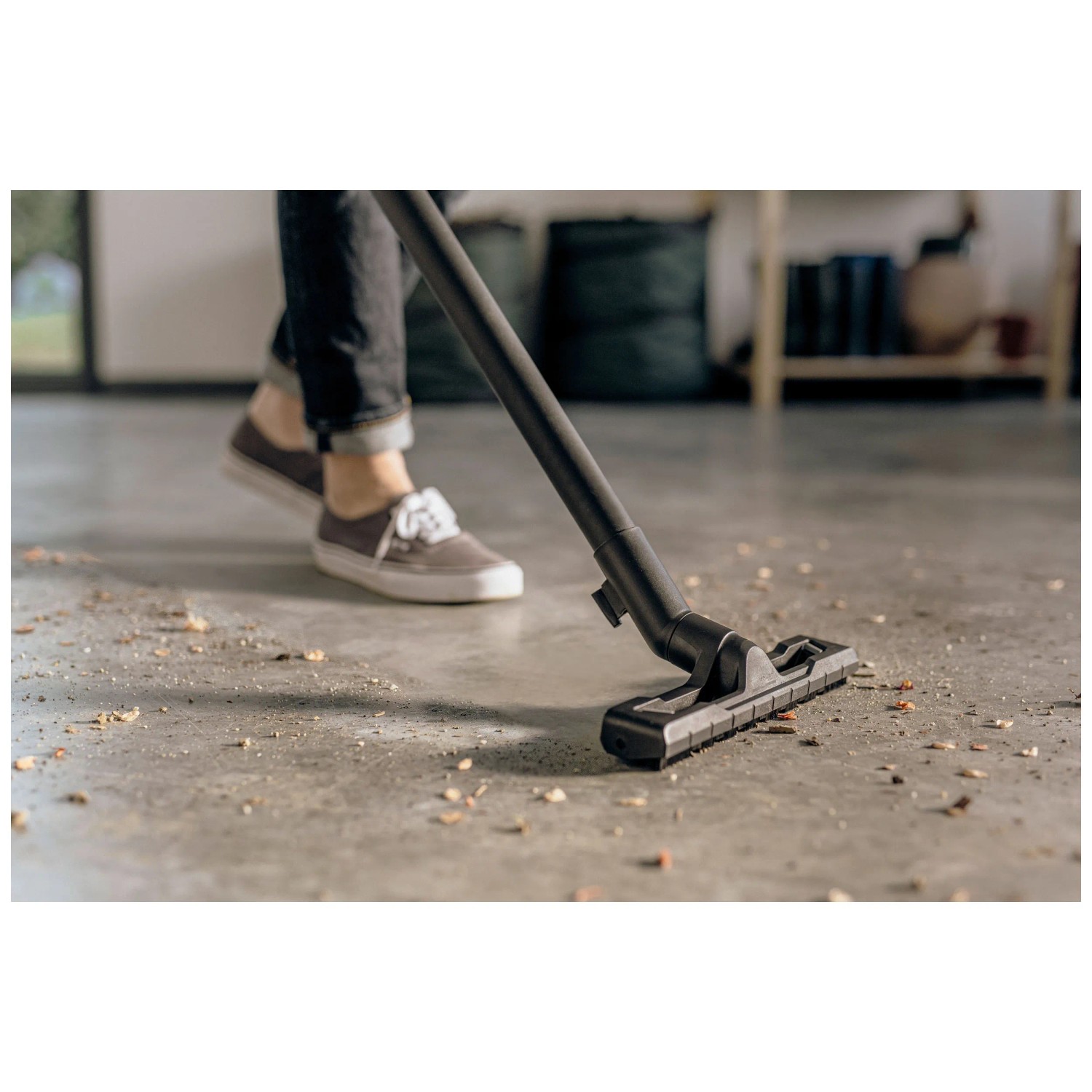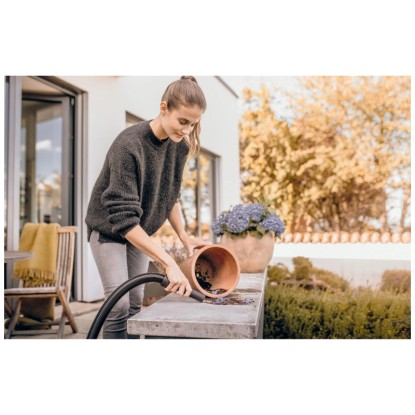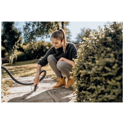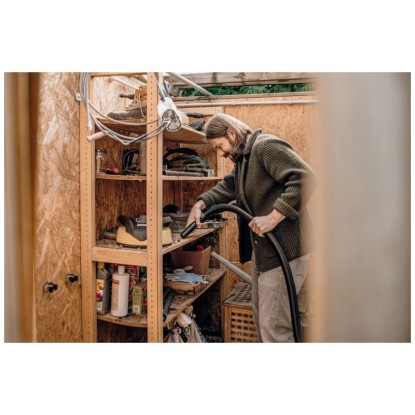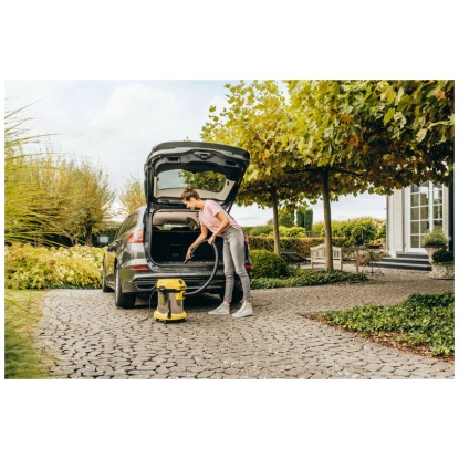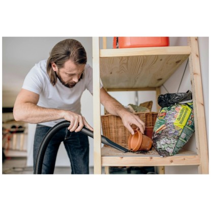 Der Kärcher Nass- und Trockensauger WD 2 Plus S V-19/4/18/C überzeugt durch seine kompakte Bauweise und starke Saugleistung bei einem Stromverbrauch von nur 1'000 W. Das Gerät erzielt sehr gute Reinigungsergebnisse bei trockenem, nassem, feinem und grobem Schmutz. Der Nass- und Trockensauger verfügt über einen robusten 19-l-Edelstahlbehälter, ein 4 m langes Kabel sowie einen 1,8 m langen Saugschlauch mit geradem Handgriff, eine Clips-Bodendüse und einen Vliesfilterbeutel. Der einteilige Patronenfilter ermöglicht das Saugen von trockenem und nassem Schmutz und lässt sich durch Drehen im Uhrzeigersinn auf den Filterkorb montieren. Der Sauger bietet zudem eine praktische Blasfunktion, die unter anderem an schwer erreichbaren Stellen eingesetzt werden kann. Die Ablagefläche auf dem Gerätekopf dient zur sicheren Ablage von Werkzeug und Kleinteilen wie Schrauben und Nägeln. Rohre und Bodendüsen können ebenfalls schnell und bequem in der am Bumper vorgesehenen Parkposition zwischengeparkt werden. Das Gerät zeichnet sich durch seine Kompaktheit, eine einfache Zubehöraufbewahrung, das Verschluss-System Pull & Push sowie einen ergonomisch geformten Tragegriff für einen komfortablen Transport aus.