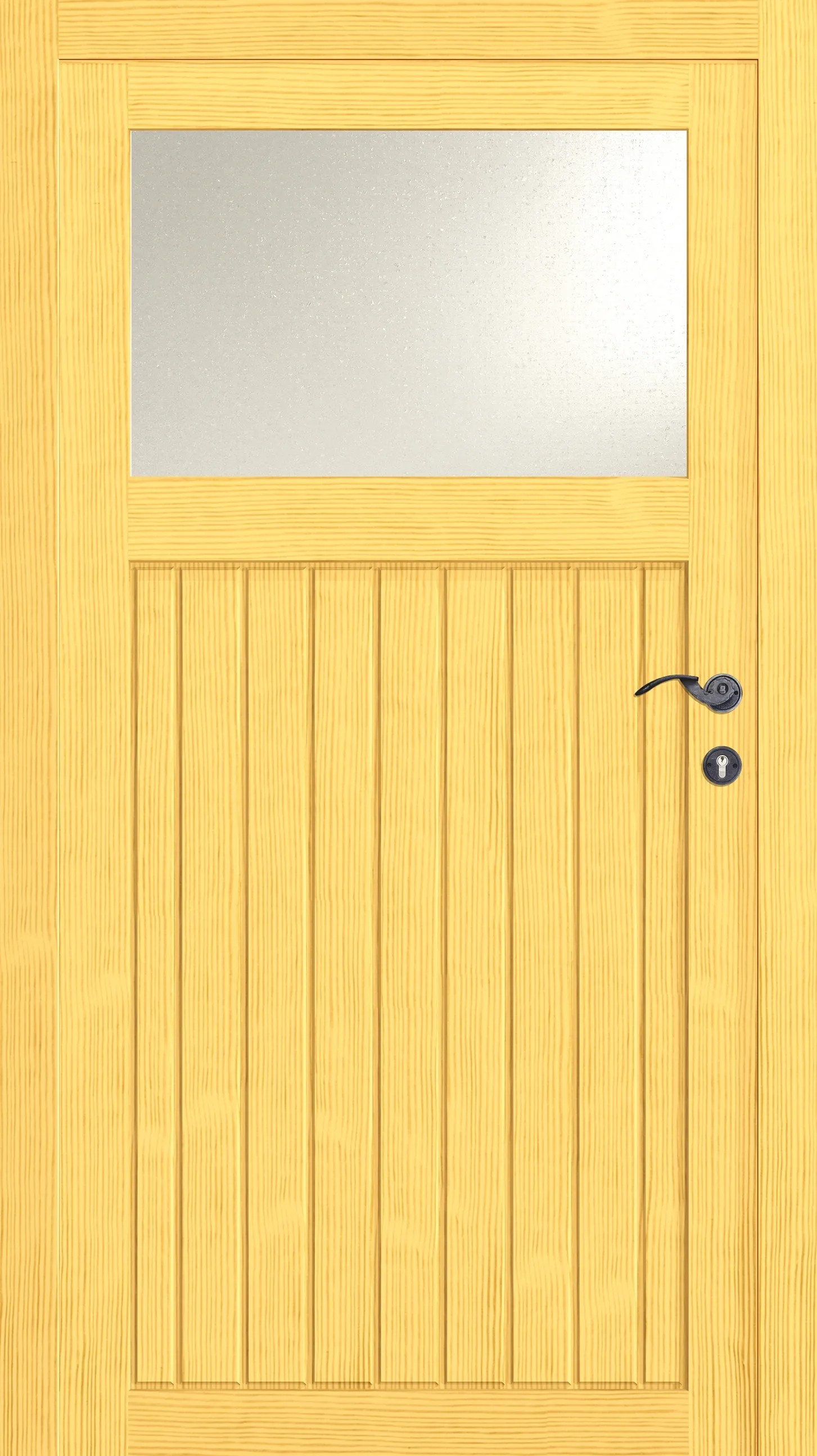 Die Roro Holz-Nebeneingangstüren sind aus hochwertigem, kammergetrockneten und imprägniertem Fichtenholz hergestellt. Die Blendrahmenstärke der Türe beträgt ca. 56 mm.