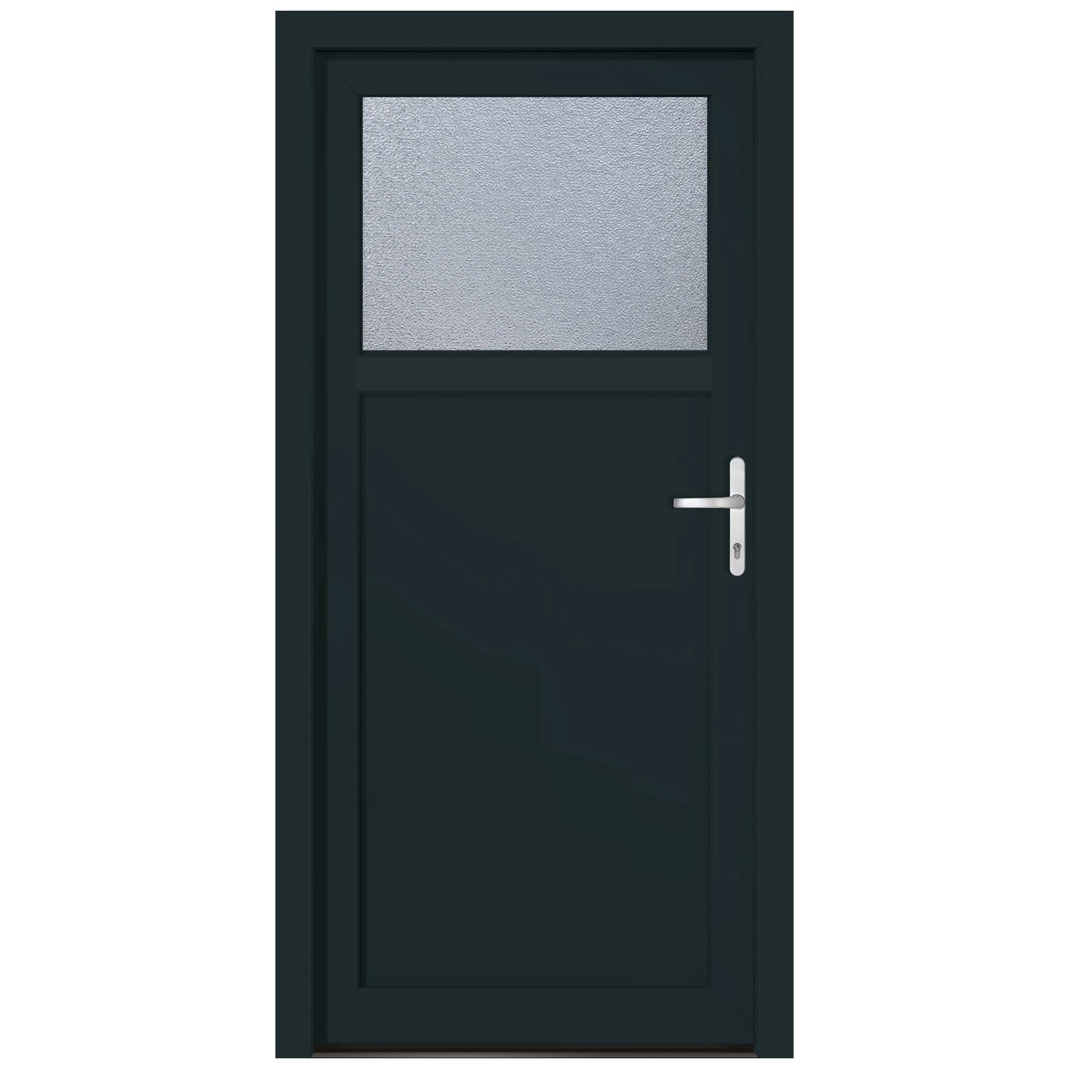 Die Roro Nebeneingangstür Hamburg Premium ist eine hochwertige Tür mit den Massen (HxB) 198 x 98 cm. Sie bietet eine Profilstärke von ca. 60 mm. Die Tür ist aus einem hochwertigen Kunststoffprofil gefertigt. Die Tür verfügt über eine verstärkte MDF-Füllung auf der Aussenseite und ist mit 3D-Bändern sowie einer fünffachen Rollenverriegelung ausgestattet. Die ISO-Ornamentverglasung 504 sorgt für zusätzliche Sicherheit. Die Tür ist innen Weiss und aussen Anthrazit. Die Tür ist DIN rechts angeschlagen. Die Drückergarnitur und der Profilzylinder sind nicht im Lieferumfang enthalten.