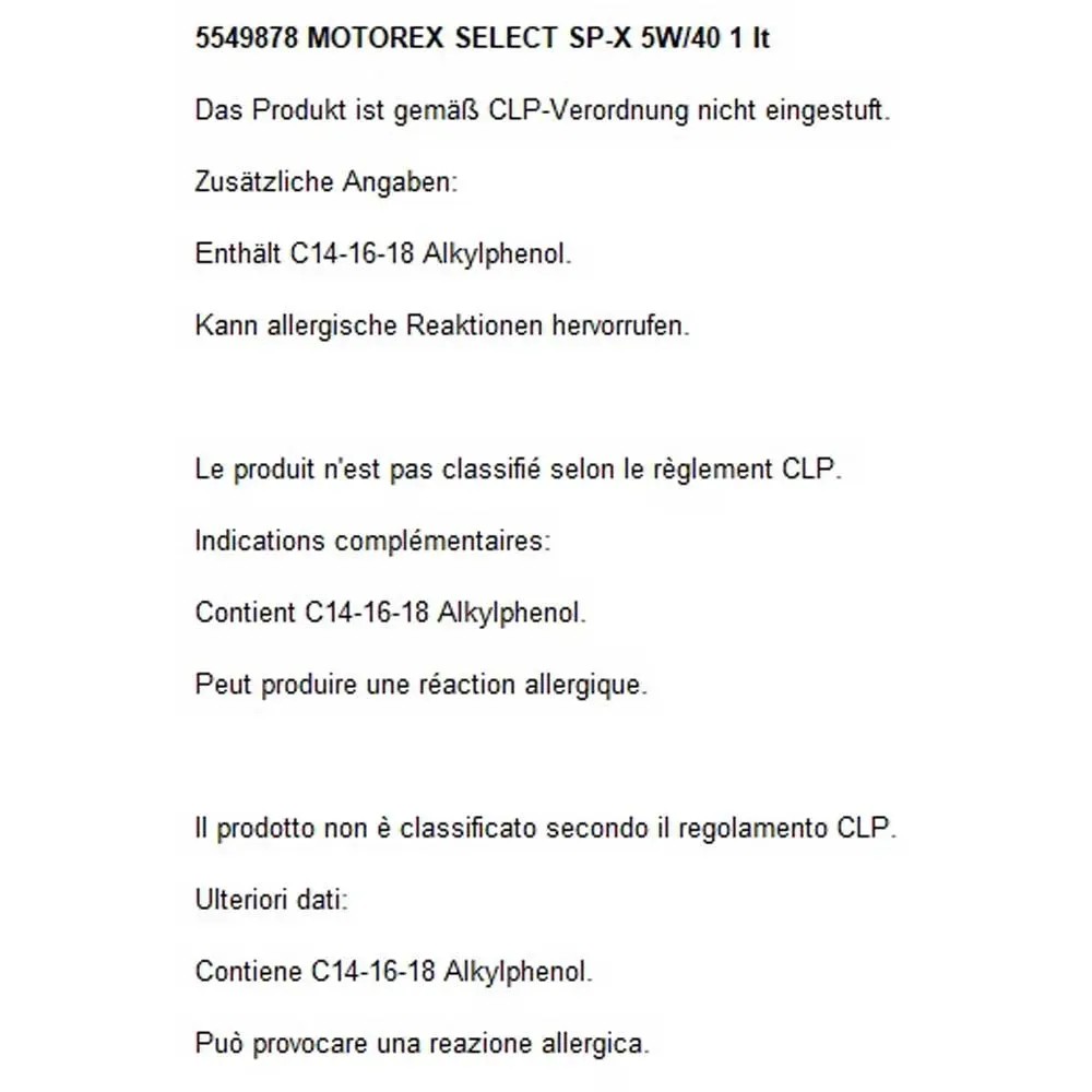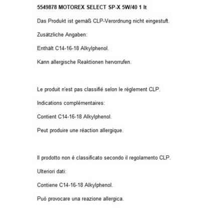 Motorex Motoröl Select SP-X 5W40 / 1 l