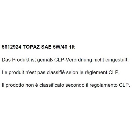 Motorex Motoröl Topaz SAE 5W/40 ist ein Synthetic Performance Mehrbereichs-Motorenöl mit breitem Einsatzspektrum. Die Verwendung moderner Basisfluids in Kombination mit ideal darauf abgestimmten Additiven garantiert auch bei härtesten Einsatzbedingungen optimalen Verschleiss-Schutz. Es ist formuliert und getestet für Benzin- und Dieselmotoren, welche nach ACEA eine A3/B4 vorgeschrieben haben mit der Viskosität SAE 5W/40. Es kann mit allen gängigen Motorenölen gemischt werden. Öl- und Filterwechsel müssen nach den Angaben des Fahrzeugherstellers durchgeführt werden.