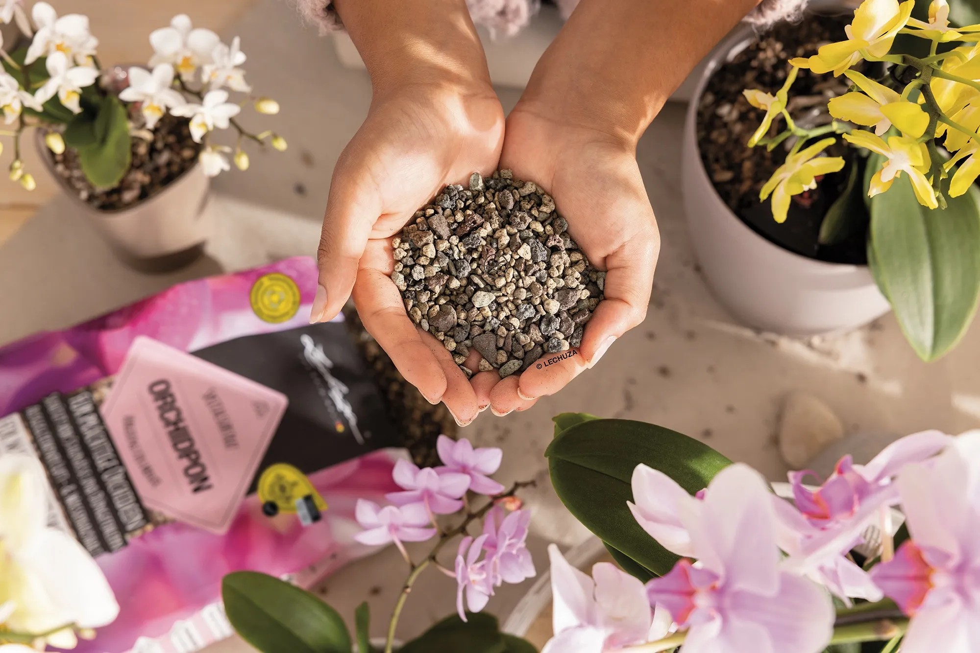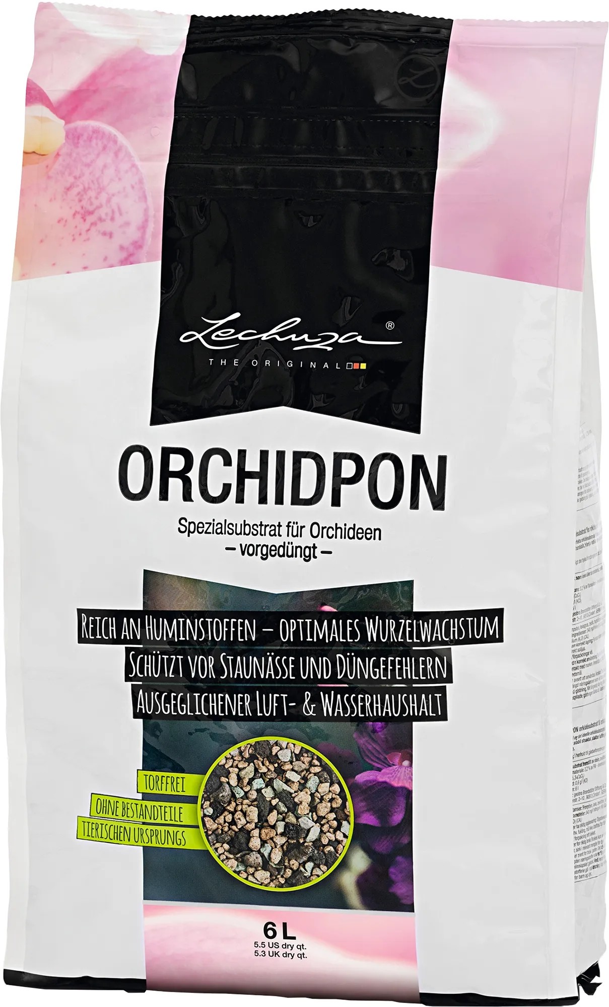 Die Orchidee ist mit ihren filigranen Blüten eine der beliebtesten Zimmerpflanzen weltweit. Speziell für die edlen Tropenbewohner hat Lechuza das Substrat Orchidpon konzipiert, das ihnen ideale Bedingungen für eine opulente Blütenpracht bietet. Orchidpon ermöglicht eine ausgeglichene Wasser- und Luftversorgung, eine gute Nährstoffspeicherung und einen gleich bleibenden pH-Wert. Wertvolle Huminstoffe begünstigen ein optimales Wurzelwachstum und die erstklassige Drainagefähigkeit schützt vor Staunässe. So fühlen sich Orchideen wohl und werden rundum bestens versorgt.