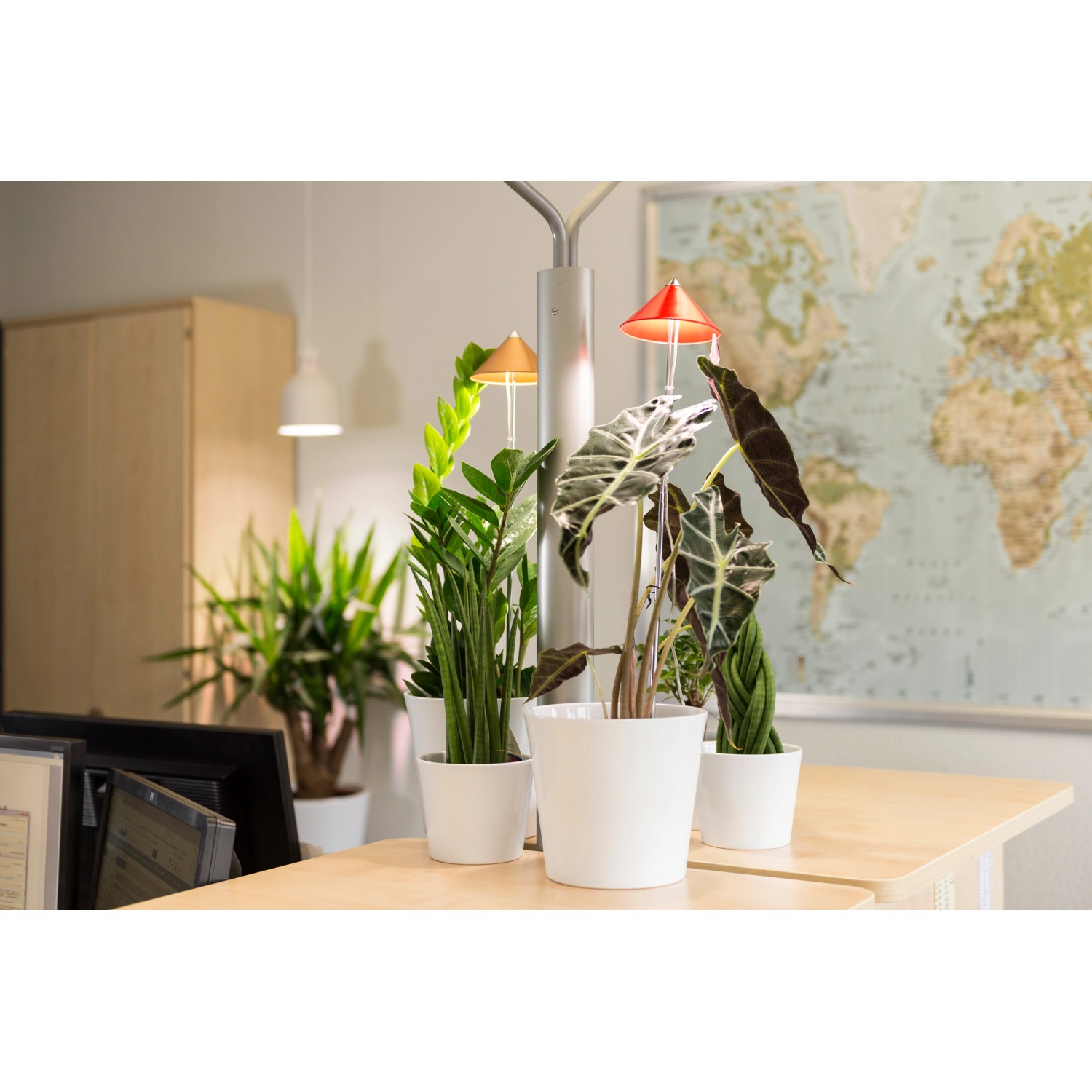 Die Parus by Venso LED-Pflanzenlampe Sunlite Kupfer 7 W bietet Topfpflanzen mit hohem Lichtbedarf die optimalen Lichtwellenlängen für ein gesünderes Wachstum. Besonders während der dunklen Jahreszeit oder in dunklen Räumen ist der Einsatz der Lampe nützlich. Sie erhalten die Sunlite in fünf verschiedenen Farben. Sie können die Lampe mit einem Teleskopstab direkt in den Pflanztopf stecken. Der Teleskopstab ist auf maximal 1 m ausziehbar. Die Lampe gibt ein angenehmes, warmweisses Licht ab, welches dem Tageslicht nachempfunden wurde. Dafür wurde modernste LED-Technik verwendet. Die eingebauten LED-Chips sind mit genau den Wellenlängen ausgestattet, welche die Photosynthese und die Chlorophyll-Bildung stimulieren. Somit sehen Ihre Pflanzen nicht nur besser aus, sie fühlen sich auch gut. Das Ergebnis ist wirklich verblüffend: mehr Blätter, mehr Blüten, mehr Früchte.