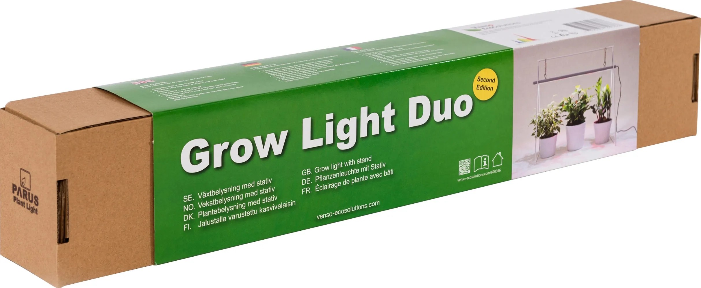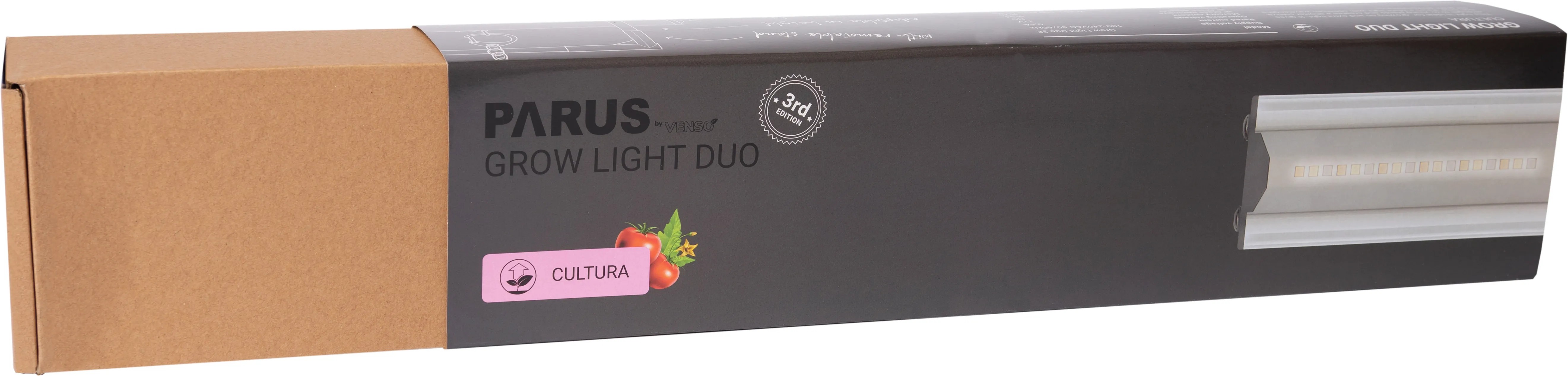 Die Parus by Venso LED-Anzuchtlampe GrowLight Duo 20 W wurde mit einem Vollspektrumlicht ausgestattet, einem für Pflanzen und der Fotosynthese angepassten LED-Licht mit verstärkten weissen und roten Wellenlängen. Das Licht ist angenehm weiss und passt hervorragend zur übrigen Beleuchtung im Haus. Das weisse Vollspektrumlicht (400 - 700 nm) fördert das Wurzelwachstum, das gerade in der Anzuchtphase besonders wichtig ist. Die roten Wellenlängen stimulieren das Spross- und Blütenwachstum. In Kombination wachsen die Pflanzen immer in einem guten Verhältnis von Wurzeln, zu Spross, zu Blättern. GrowLight Duo verwenden Sie zum Vorziehen und Treiben von diversem Gemüse, Kräutern und Blühpflanzen oder als ergänzende Lichtquelle zur Wachstumsförderung von Jungpflanzen. Der Lieferumfang von GrowLight Duo umfasst ein Stativ, welches die Aufstellung und Aufhängung erleichtert. Die Höhe der Leiste über den Pflanzen können Sie mithilfe der mitgelieferten Ketten einfach justieren. Die Lichtintensität passen Sie je nach Wachstumsstadium Ihrer Jungpflanzen durch einen mitgelieferten Dimmer an