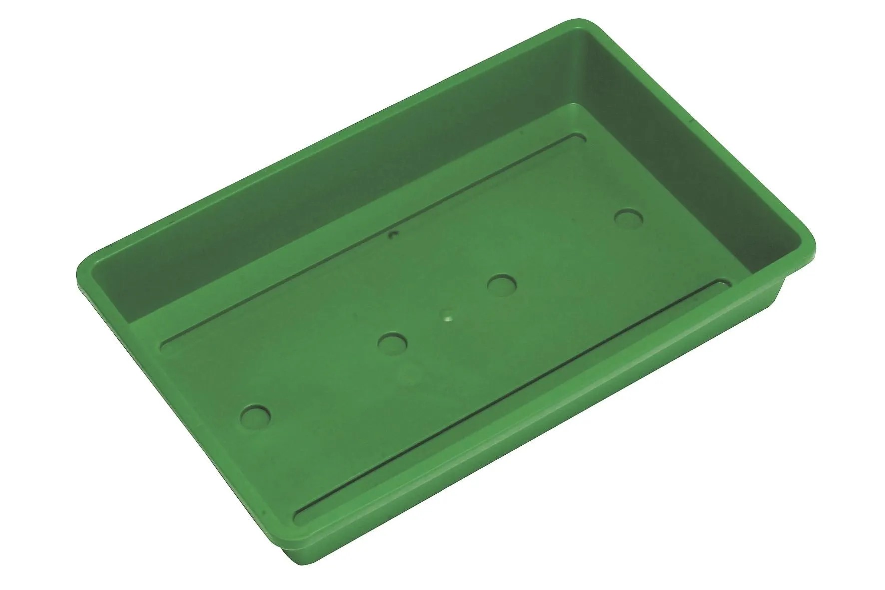 Formschöne, stabile grünfarbene Universalschale aus Polypropylen für die Anzucht von Gemüse oder Blumenarten. Die Schale ermöglicht eine optimale Wasserverteilung durch Rinnen im Boden. Die runden Ausstanzungen im Boden sind zudem ideal für die Nutzung von Quelltabs mit einem Durchmesser von 3,5 cm, die genau in diese Vertiefungen passen. In Verbindung mit dem Fensterbankgewächshaus-Deckel und den Quelltabs bzw. Anzuchttöpfen haben Sie eine ideale Komplettlösung für eine erfolgreiche Anzucht. Die Masse betragen 38 x 24 x 6 cm.