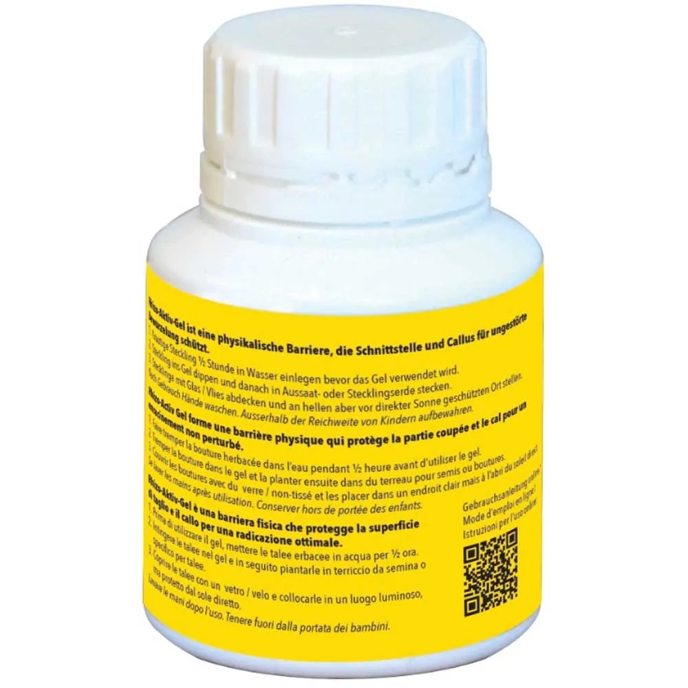Rhizo-Aktiv-Gel ist ein Silikat-Gel auf Wasserbasis mit Spuren von Metall-Salzen zur Stecklingsanzucht. Durch Eintauchen der Schnittstelle hilft der Schutzfilm vor Zutritt von Schaderregern zur ungestörten Bewurzelung.