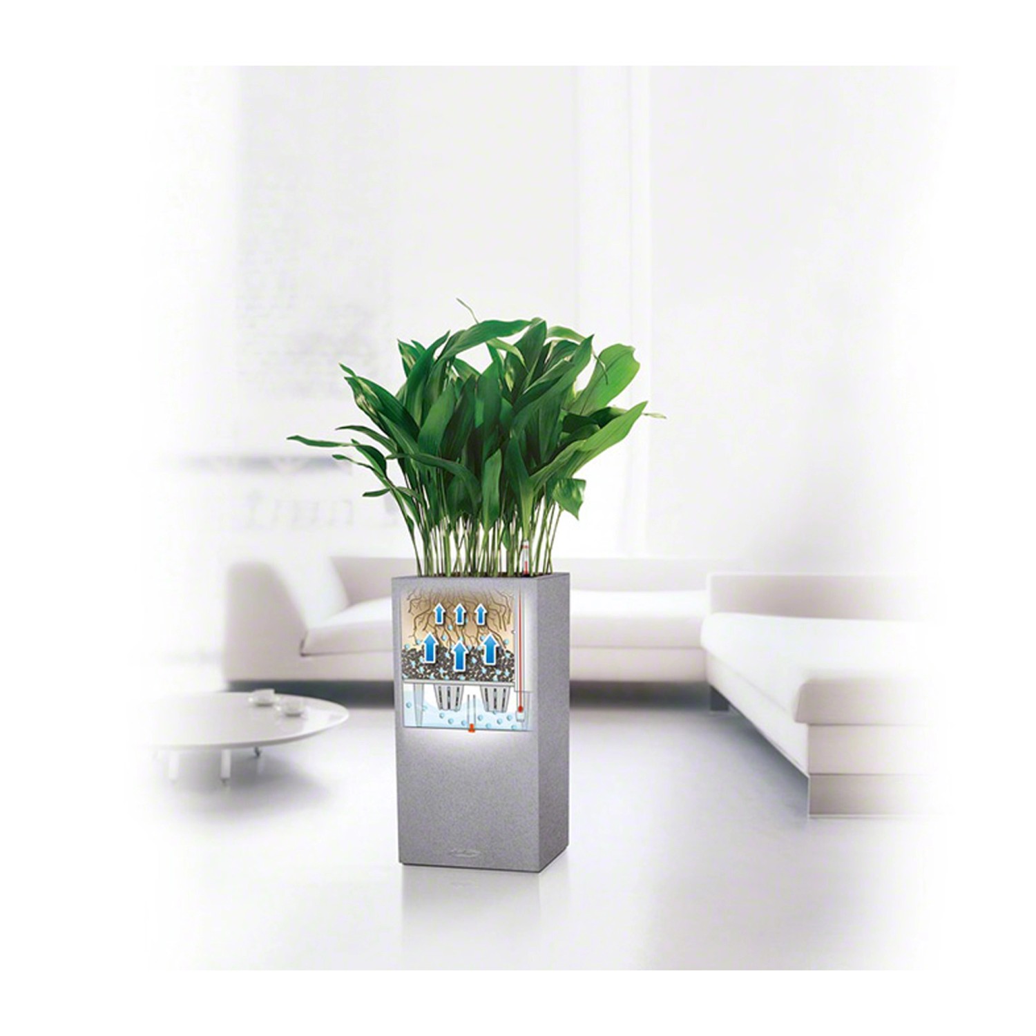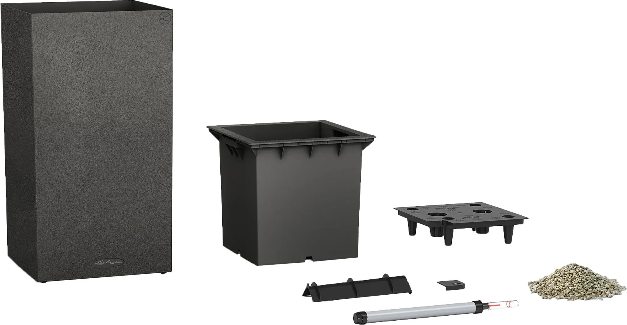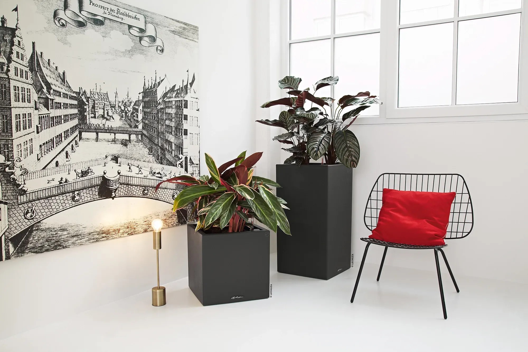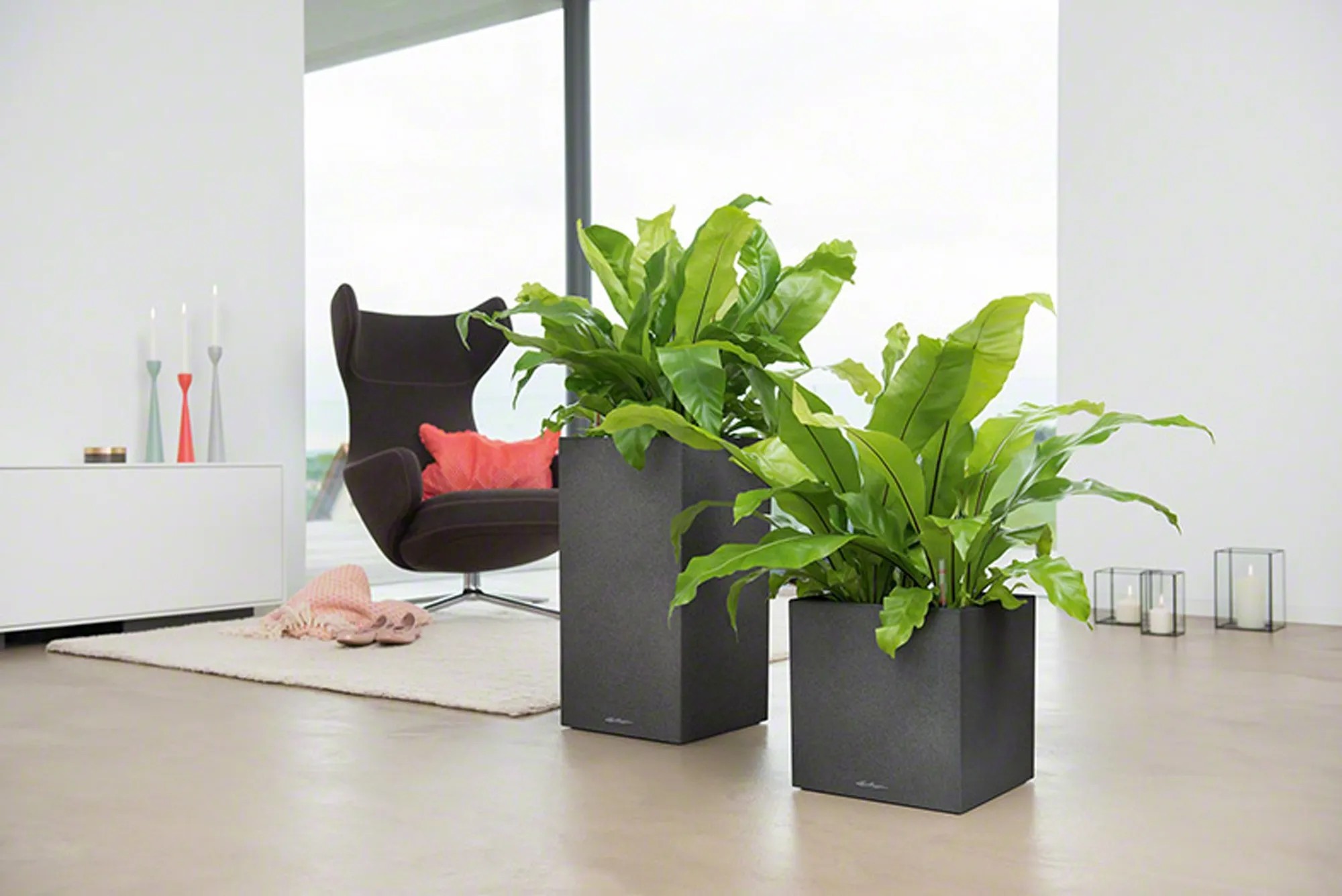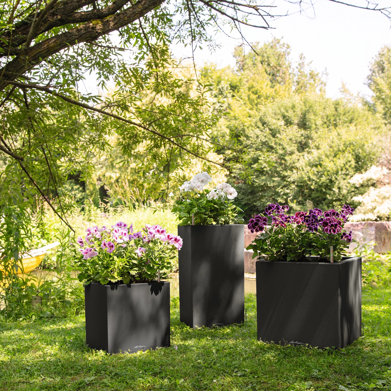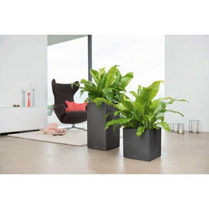 Wer klare Linien schätzt, wird Canto Color lieben. Die raue Naturstein-Optik in drei Farbtönen bildet einen wunderbaren Kontrast zu sattem Grün und bunten Blüten. Dank gleicher Abmessungen kann der Lechuza Canto Color Pflanzeinsatz zwischen den beiden Modellen Würfel und Säule problemlos getauscht werden.