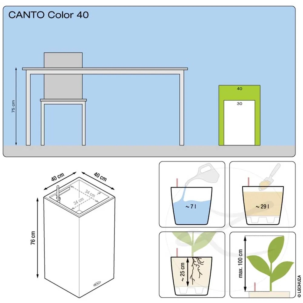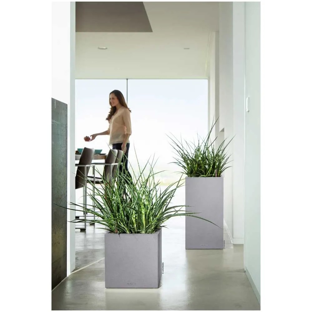 Wer klare Linien schätzt, wird das Pflanzgefäss Canto Stone von Lechuza lieben. Die raue Natursteinoptik bildet einen wunderbaren Kontrast zu sattem Grün und bunten Blüten. Dank gleicher Abmessungen kann der Canto Pflanzeinsatz zwischen den beiden Modellen Würfel und Säule problemlos getauscht werden.