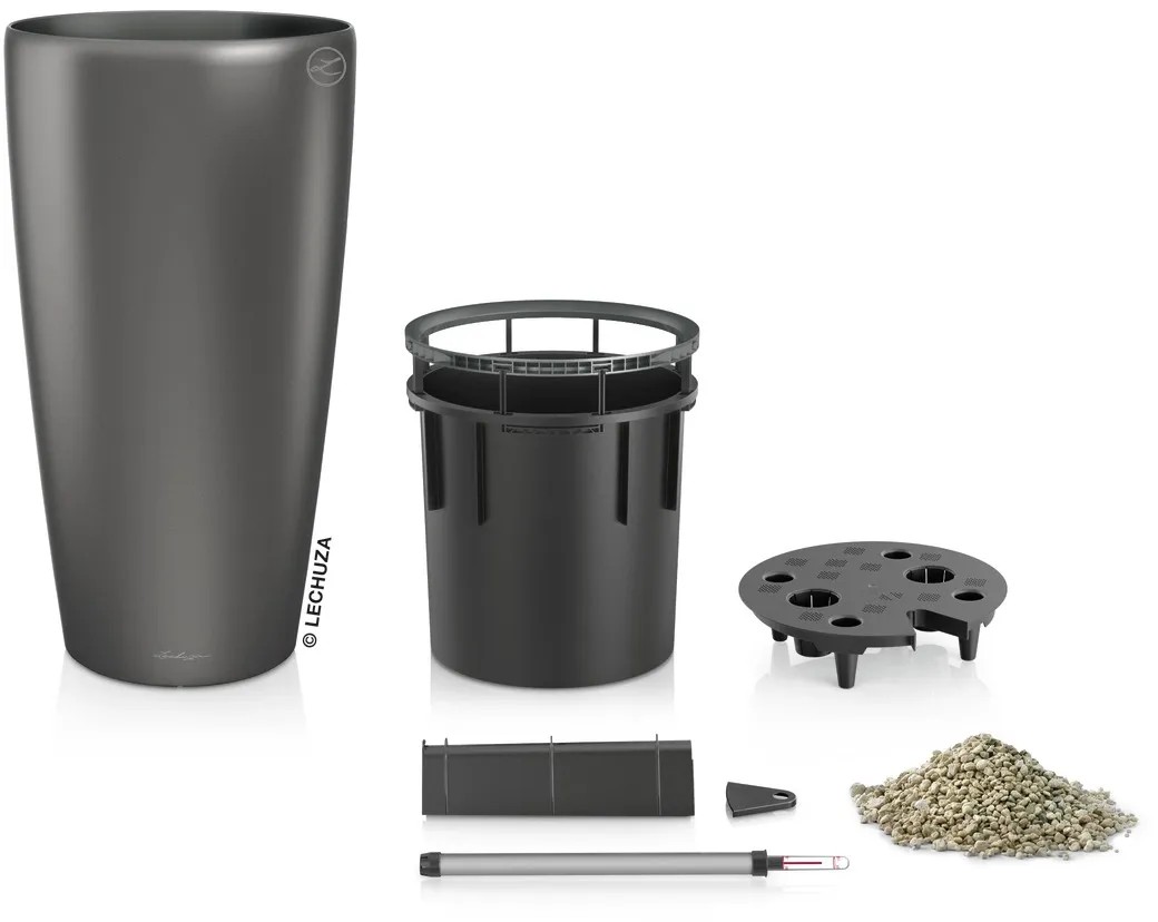 Lechuza Pflanzgefäss Rondo Premium Anthrazit Metallic Ø 32 cm / Höhe 56 cm