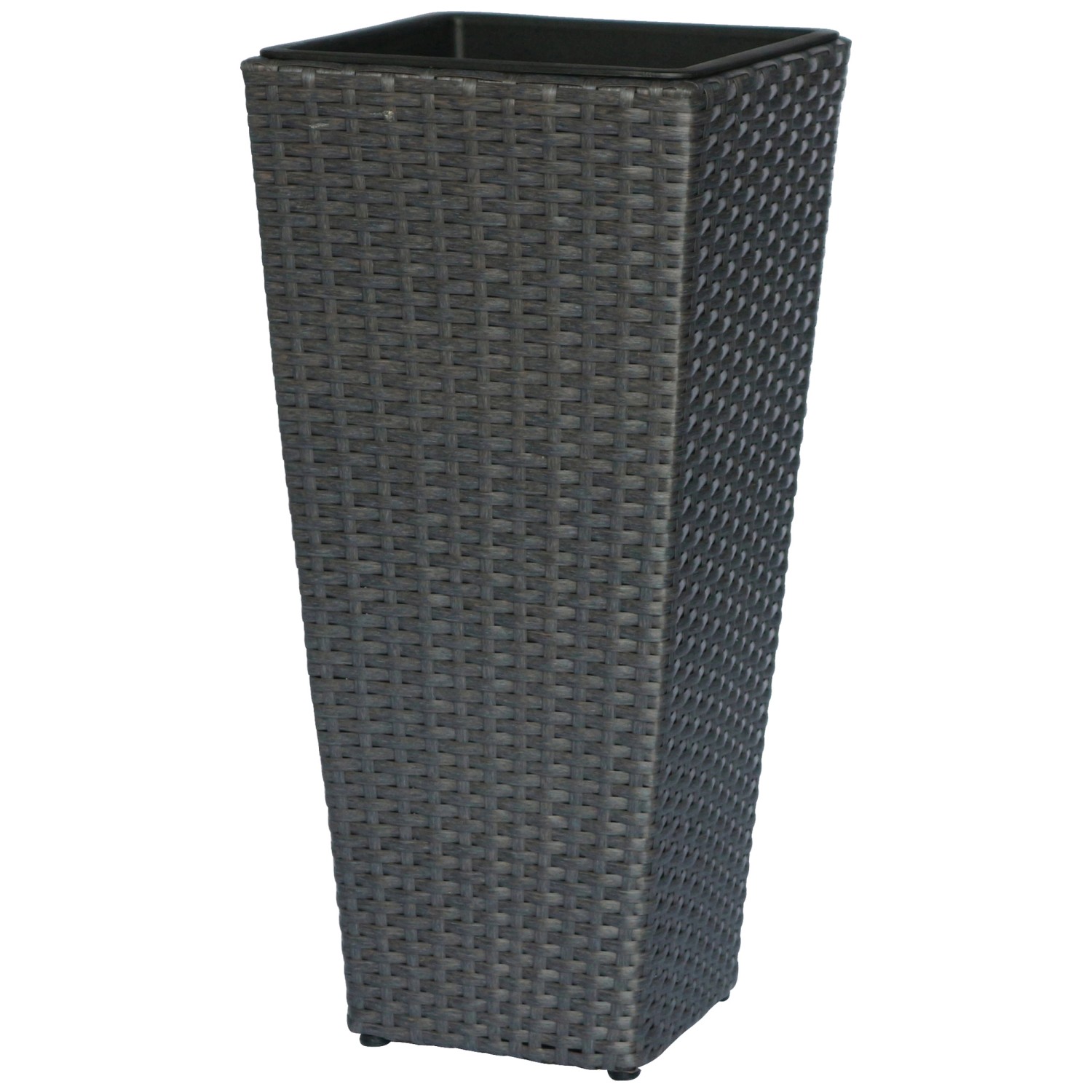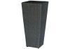 Gleichermassen für den Innen- und Aussenbereich eignet sich das vasenförmige Pflanzgefäss. Es kann individuell mit Zimmerpflanzen oder Stauden für draussen bestückt werden und sorgt für einen Blickfang auf der Terrasse oder unter dem Vordach. Hergestellt ist die konisch verlaufende Vase aus Polyrattan in der Farbe Deep Water. Ihre strukturierte Oberfläche weist eine natürliche Flechtoptik auf. Das Material besitzt witterungsbeständige Eigenschaften und ist frostbeständig bis -10 °C. Daher ist er zur Überwinterung im Aussenbereich geeignet. Um Staunässe zu vermeiden, sollte der Pflanztopf jedoch im überdachten Bereich aufgestellt werden. Ein herausnehmbarer Kunststoffeinsatz ermöglicht eine mühelose Bepflanzung.