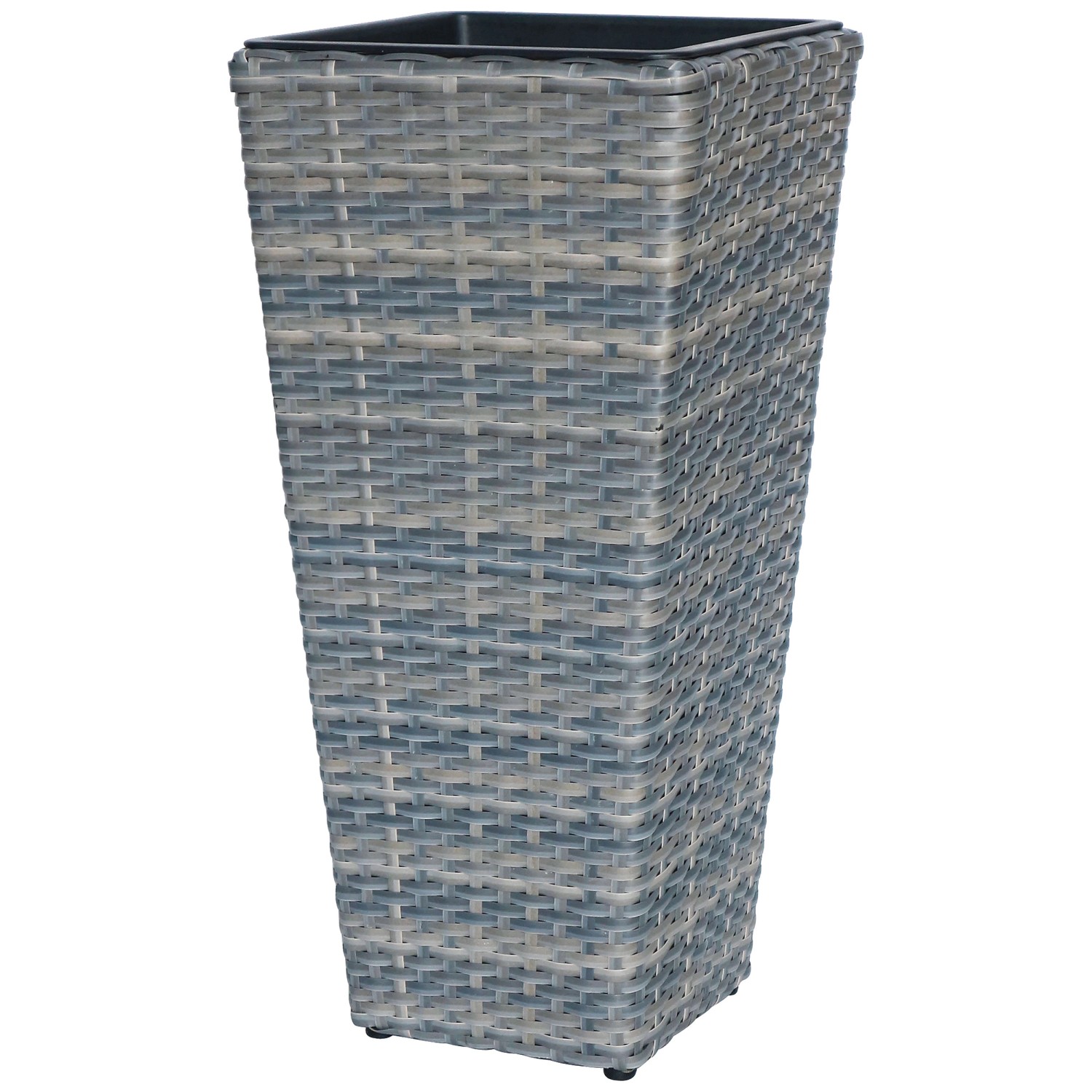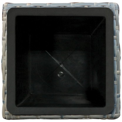 Gleichermassen für den Innen- und Aussenbereich eignet sich das vasenförmige Pflanzgefäss. Es kann individuell mit Zimmerpflanzen oder Stauden für draussen bestückt werden und sorgt für einen Blickfang auf der Terrasse oder unter dem Vordach. Hergestellt ist die konisch verlaufende Vase aus Polyrattan in der Farbe Wave. Ihre strukturierte Oberfläche weist eine natürliche Flechtoptik auf. Das Material besitzt witterungsbeständige Eigenschaften und ist frostbeständig bis -10 °C. Daher ist er zur Überwinterung im Aussenbereich geeignet. Um Staunässe zu vermeiden, sollte der Pflanztopf jedoch im überdachten Bereich aufgestellt werden. Ein herausnehmbarer Kunststoffeinsatz ermöglicht eine mühelose Bepflanzung.