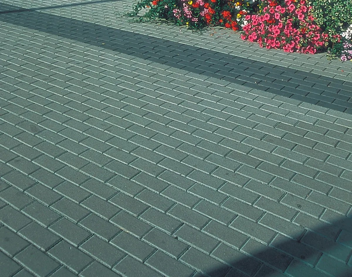 Der gefaste Pflasterstein mit betonglatter Oberfläche ist die praktische und wirtschaftliche Lösung für Einfahrten und Wege.