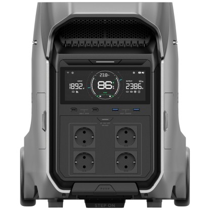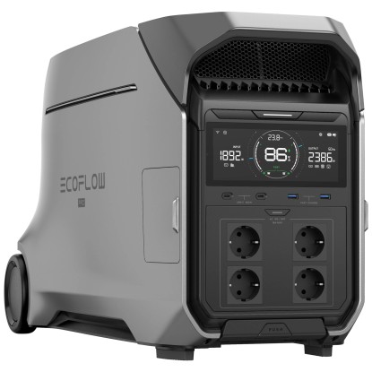 Die Ecoflow Powerstation Delta Pro ist ein leistungsstarker Stromspeicher mit grosser Kapazität, der sich ideal für den Einsatz als Notstromversorgung, beim Camping oder für mobile Anwendungen eignet. Ausgestattet mit einem langlebigen Lithium-Ionen-Akku bietet sie eine Kapazität von 4'096 Wh und ermöglicht das gleichzeitige Laden und Betreiben mehrerer Geräte. Das übersichtliche Display zeigt alle wichtigen Informationen wie Ladezustand, Ein- und Ausgangsleistung sowie verbleibende Laufzeit an. Dank der vier integrierten Schuko-Steckdosen, mehreren USB-Anschlüssen und Schnellladefunktionen ist die Powerstation vielseitig einsetzbar. Das robuste Gehäuse mit grossen Rollen und ausziehbarem Griff erleichtert den Transport, während verschiedene Ladeoptionen wie Netzstrom, Solarpanels oder Kfz-Anschluss maximale Flexibilität bieten.