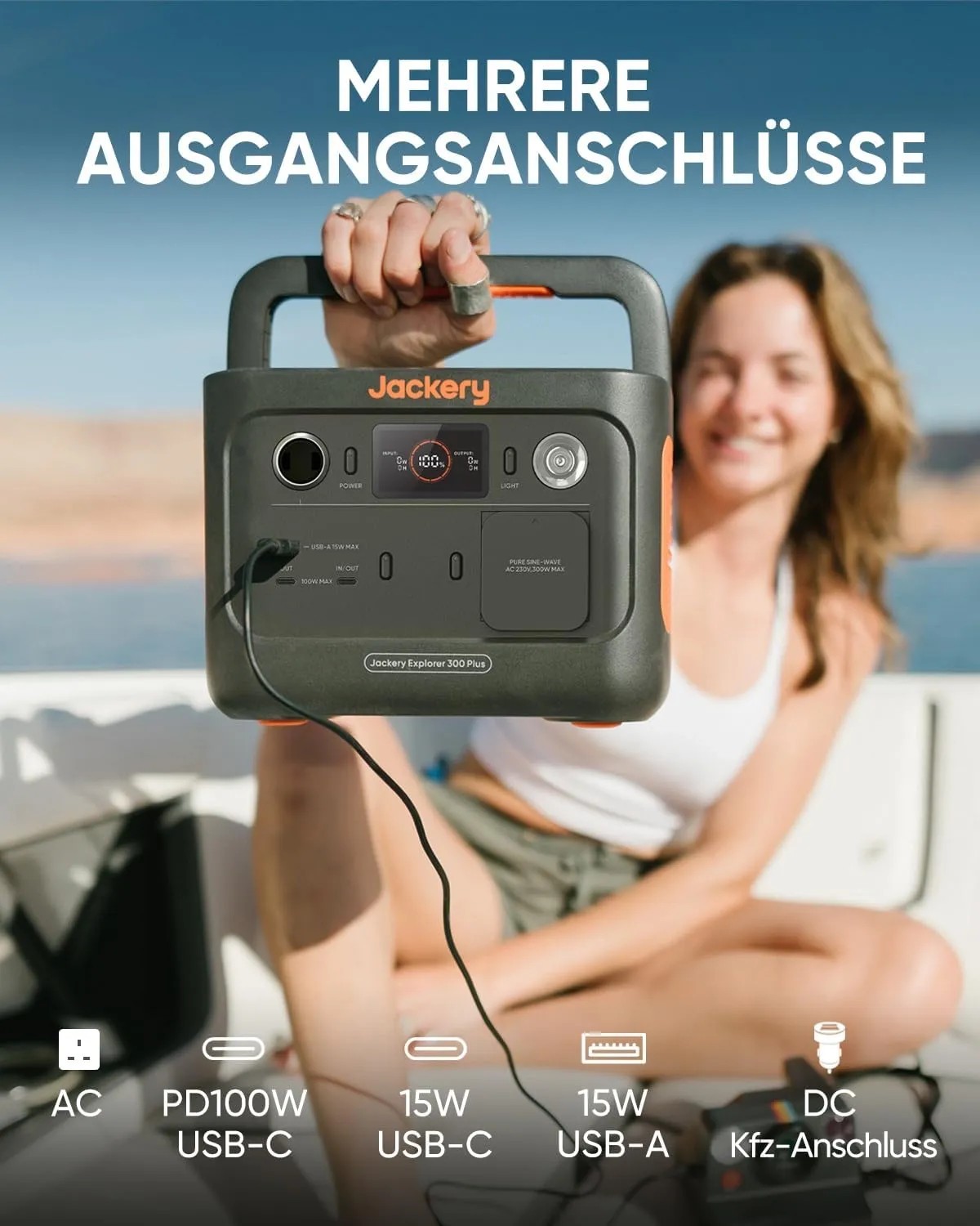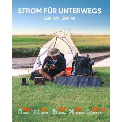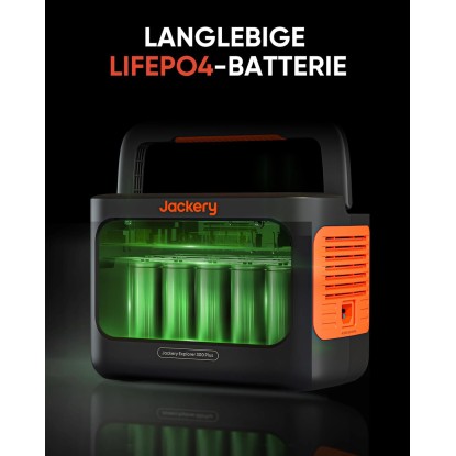 Die tragbare Powerstation Explorer 300 Plus von Jackery ist mit einem LiFePO4-Akku ausgestattet, der sie kompakt und leicht macht. Sie bietet eine Kapazität von 288 Wh und eine Ausgangsleistung von 300 W (600 W Spitzenleistung). Dank eines AC-, USB-A- und USB-C-Ausgangs können bis zu 4 Geräte gleichzeitig geladen werden - perfekt für Outdoor-Abenteuer und Notstromversorgung. Die MPPT-Technologie sorgt für eine effiziente Solarladung.
