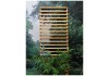 Das Rankgitter Linearform besteht aus horizontalen Latten 3 x 1,5 cm. Alles ist in Lärche natur und gehobelt. Die Leisten sind von hinten an den Rahmen geklammert.