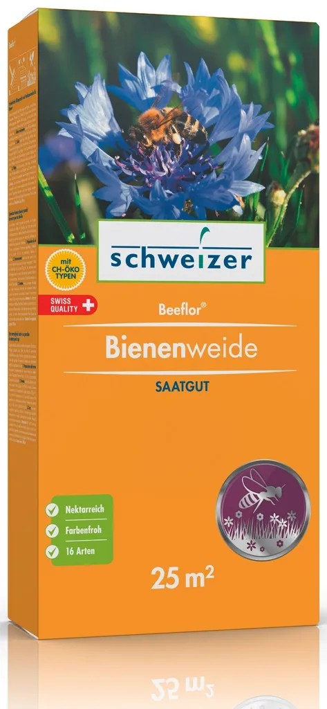 Beeflor - Bienenweide ist die farbenfrohe Blütenpracht und Nektarparadies für Bienen. Diese einjährige, bunte Mischung mit Mohn, Kornblumen, Kleearten, Phacelia etc. bietet für Bienen eine attraktive Nahrungsquelle. Beeflor blüht üppig, schliesst die Lücke der nektararmen Zeit und trägt so zum Erhalt von Bienenvölkern bei.