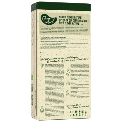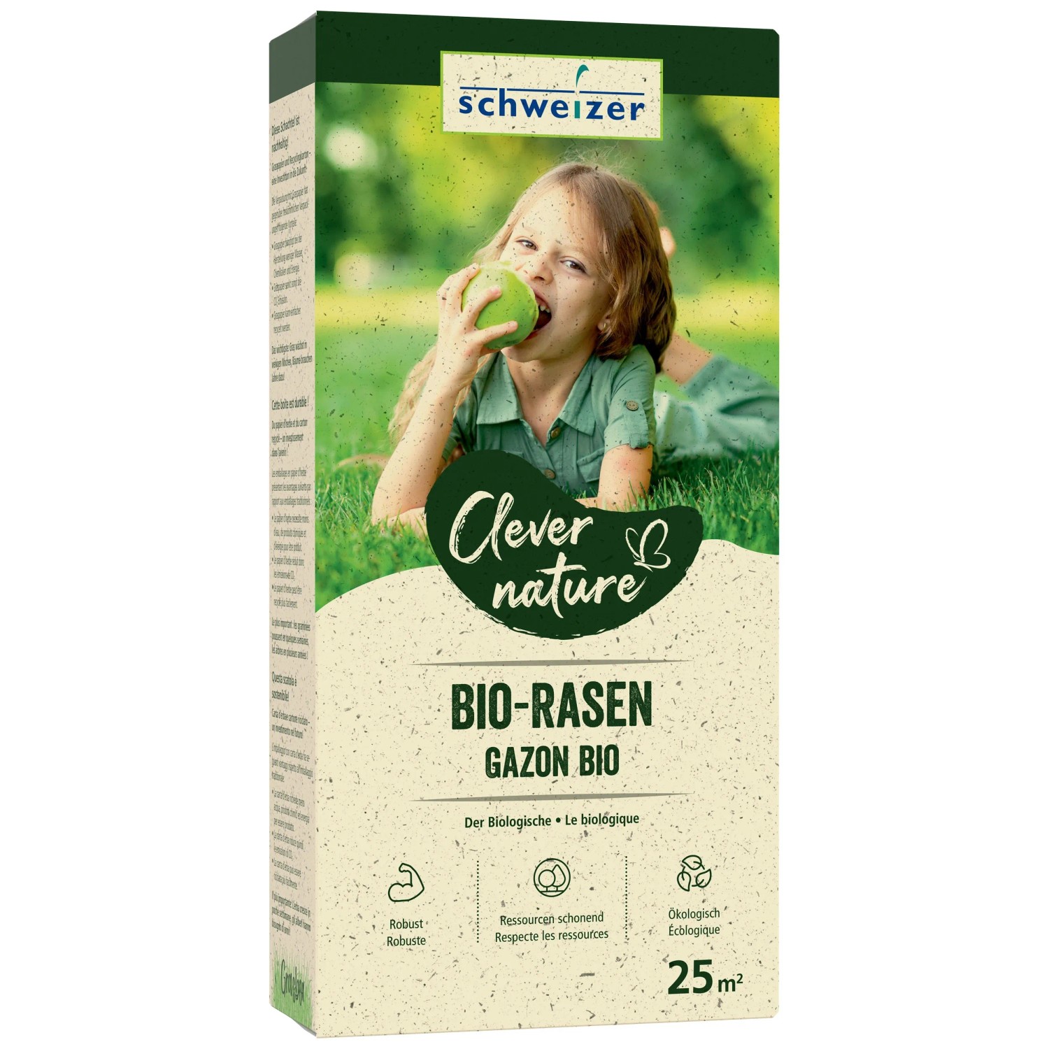 Die einzigartige Saatgutmischung Clever Nature Bio-Rasen enthält ausschliesslich nach Bio-Richtlinien produziertes Rasen-Saatgut. Sie eignet sich für einen genügsamen und robusten Hausrasen.