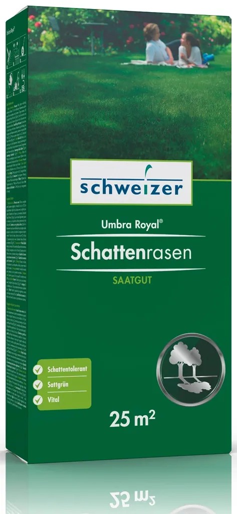 Der Umbra Royal Schattenrasen ist für alle Gärten mit beschatteten Rasenflächen perfekt. Umbra Royal enthält das bestgeeignete Rasensaatgut Poa Supina für beschattete Lagen. Umbra Royal ist auch für sonnige Standorte und Höhenlagen geeignet.