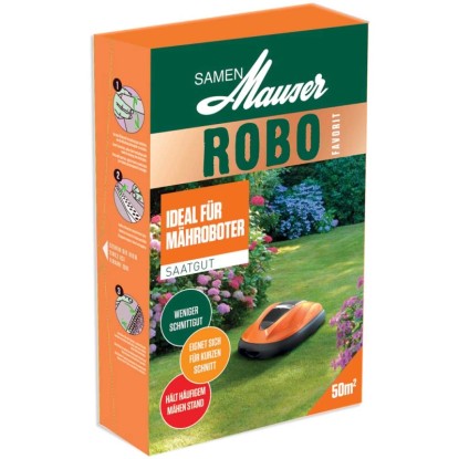 Das Saatgut Robo ist die ideale Lösung für jene mit einem Mähroboter. Die Mischung besteht aus Sorten, welche sehr dichte und lange Wurzeln entwickeln. Das Resultat: Ein Rasen der sehr trockenheitstolerant und extrem pflegeleicht ist. Die Mischung ist speziell für die Pflege mit Mährobotern empfohlen. Sie toleriert häufiges und tiefes Mähen.
