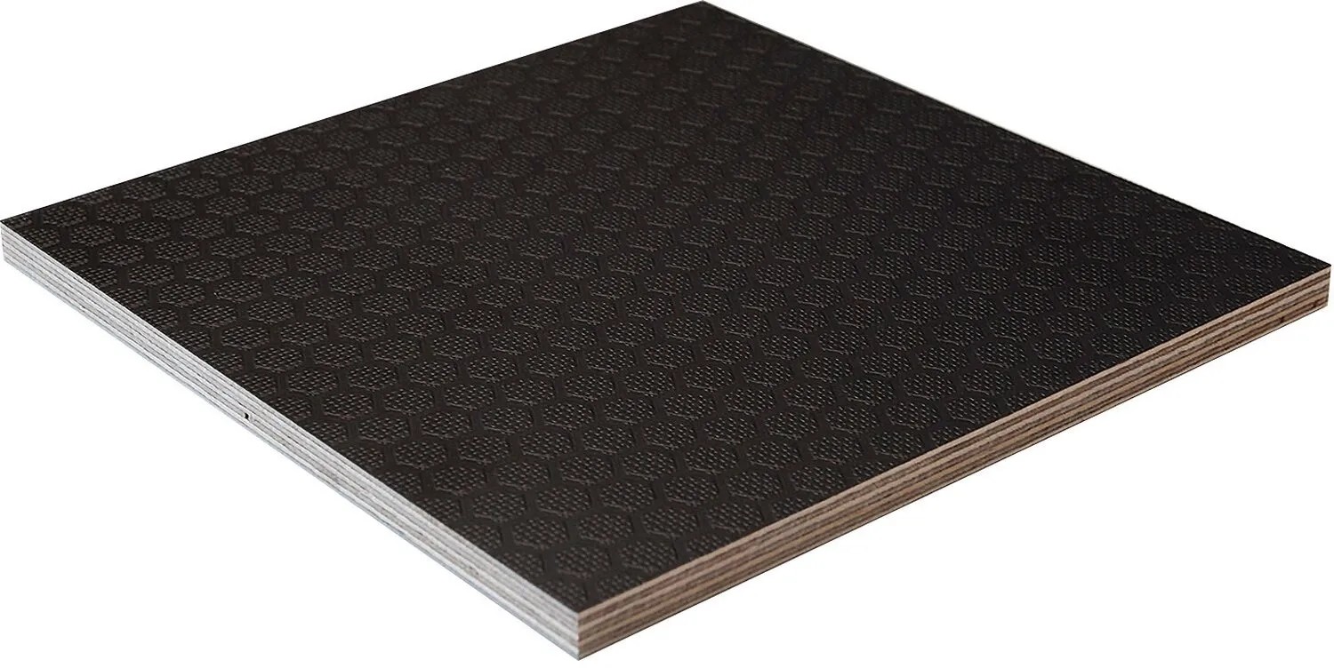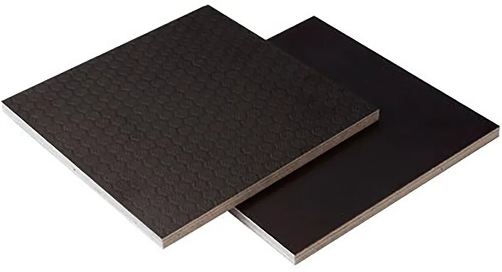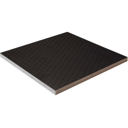 Die Siebdruckplatte hat eine strapazierfähige Oberfläche. Auf der einen Seite mit Hexaprägung. Auf der anderen mit Filmbeschichtung.