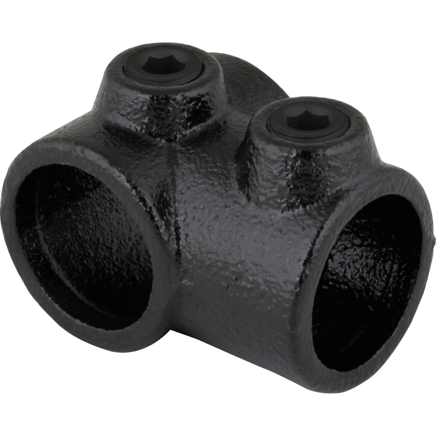 Das kurze T-Stück kann universell verwendet werden und eignet sich zum Bau von Möbeln und Dekogegenständen im Industrielook wie beispielsweise Regale, Schränke und Lampen. Mit dem T-Stück können zwei Rohre in einem 90°-Winkel miteinander verbunden werden. Das Material ist lackierter Stahl in der Farbe Schwarz. Die Rohre sind separat erhältlich.
